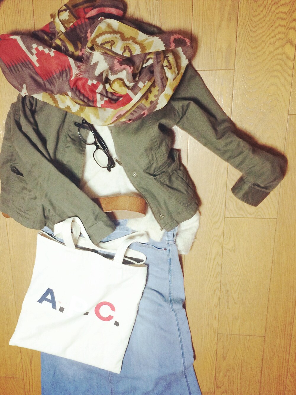 アウター:earth music & ecology ニット:AG by aquagirl デニムスカート:nano universe ワンパターンになりがち