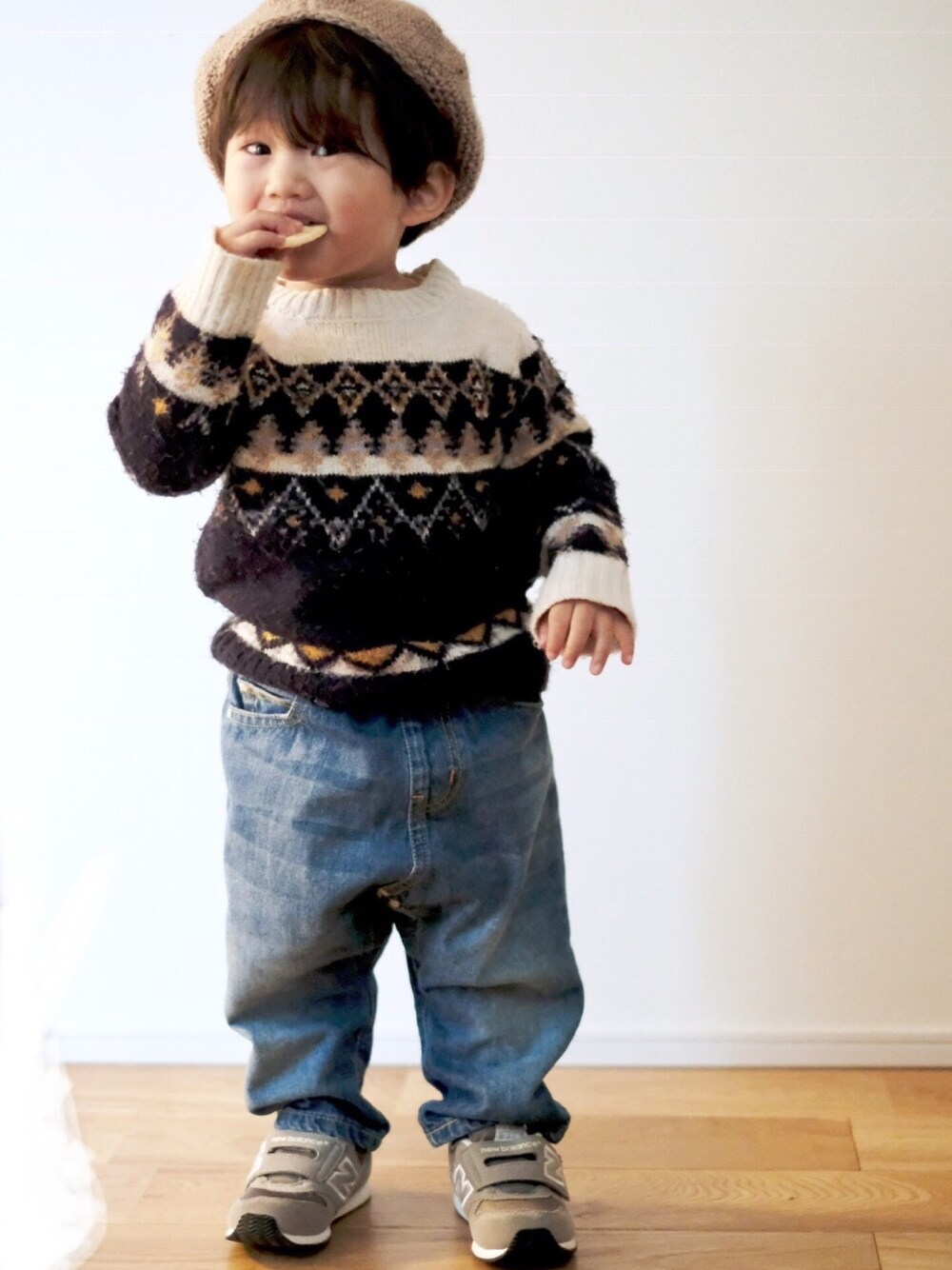 soくん、お誕生日おめでとう‼️ りきママベレー+ニット+デニム+NBで、リンク♪ soくんももう2歳かぁー✨ 0歳の時から似たアイテム持ってて嬉しくて、1歳も2歳の時もお祝いのシュールさがww🤣 コーデがいつも可愛くて真似したくなる♡ これからもよろしくね🌸🌸💐