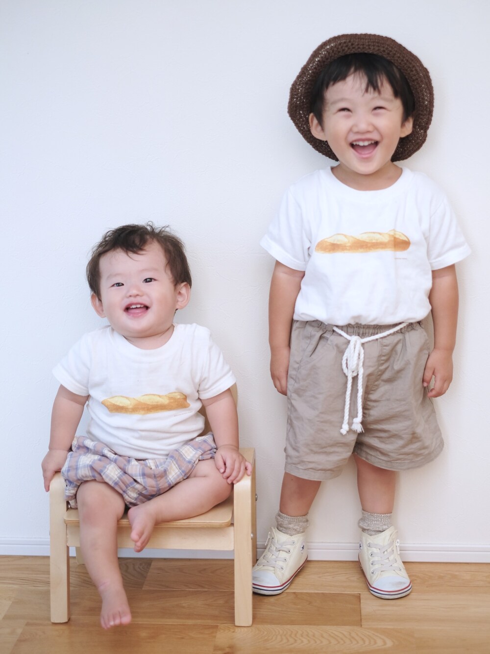 いつもありがとうございます♪ 弟が産まれたら、お揃いで着せたいなぁと楽しみにしてたパン🥖 👶11ヶ月にして、 ようやく写真におさめれました。。 暴れまくる2歳児に、オシャレが遠のく悲しさ😂 ウエストのヒモがオモチャになる🧸