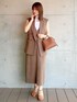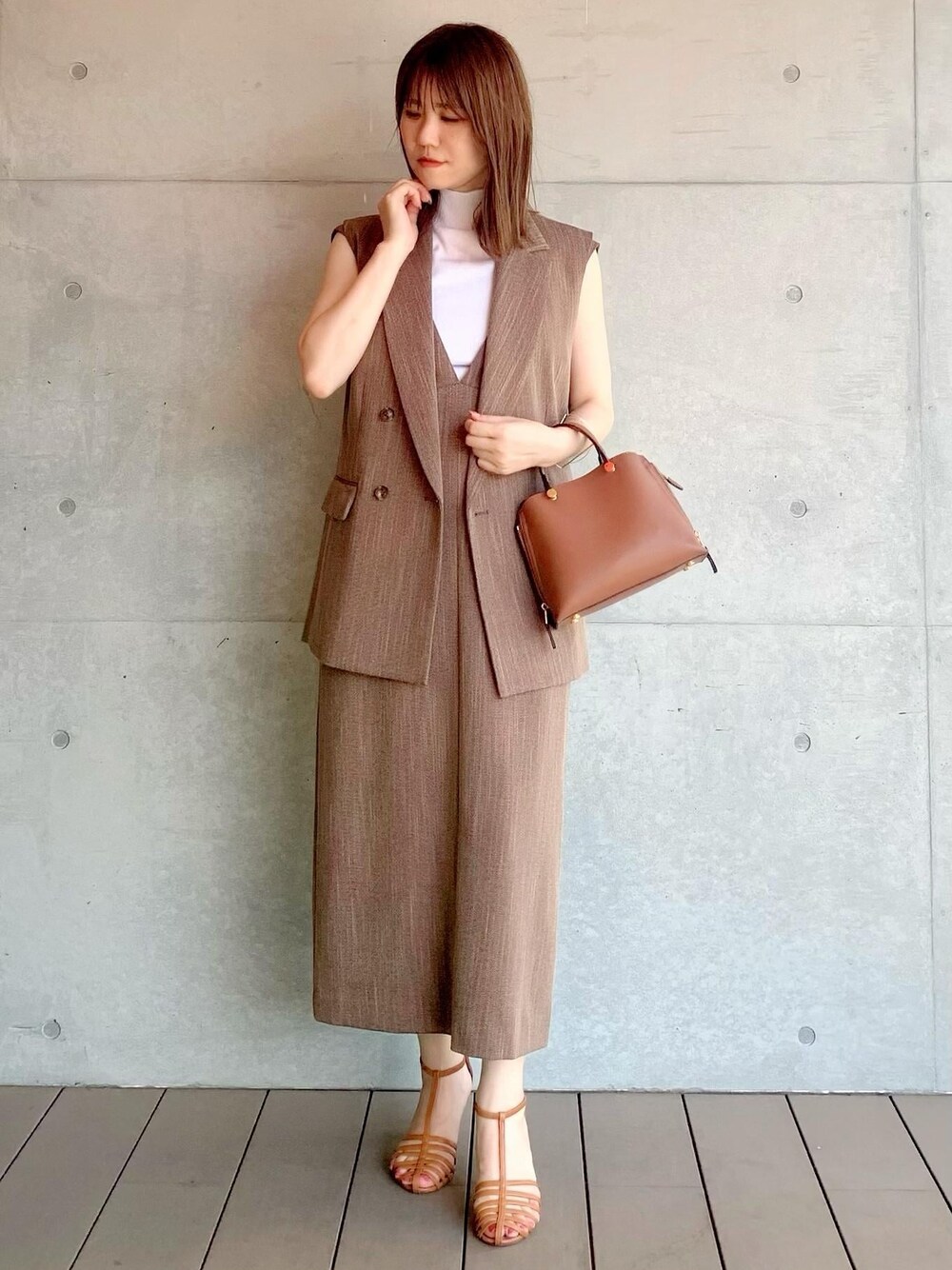 スリーブレスのカジュアルな羽織と、クラシカルなジャンパースカートの新しいセットアップです。 女性らしさにほどよく抜け感がでるので、きれいすぎずシーンを選びません。 インナーをタンクトップ/Tシャツにしたらすぐに着れる秋のスイッチアイテムです!
