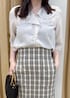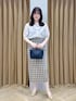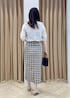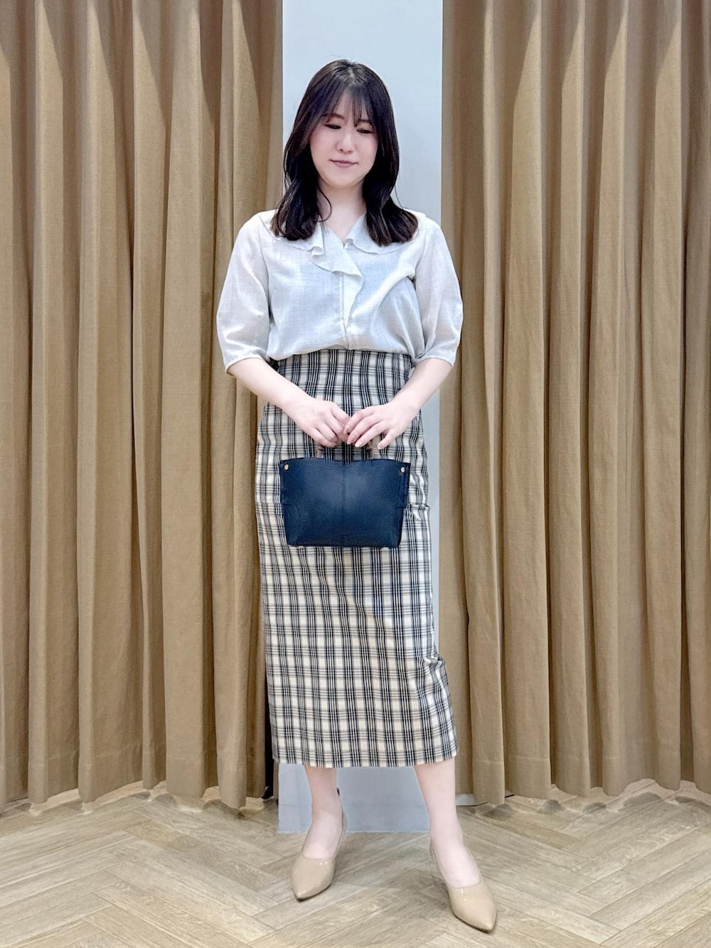 Iラインを意識してすっきりとまとめたスタイリングです。 シンプルになりすぎないようフリルをポイントにさりげなく甘さをプラス。 ロペのロングヒットアイテム"美人スカート"のチェック柄が新登場!張りがありながらも軽い素材で、この夏Tシャツとも合わせたくなる着まわし確定アイテムです◎