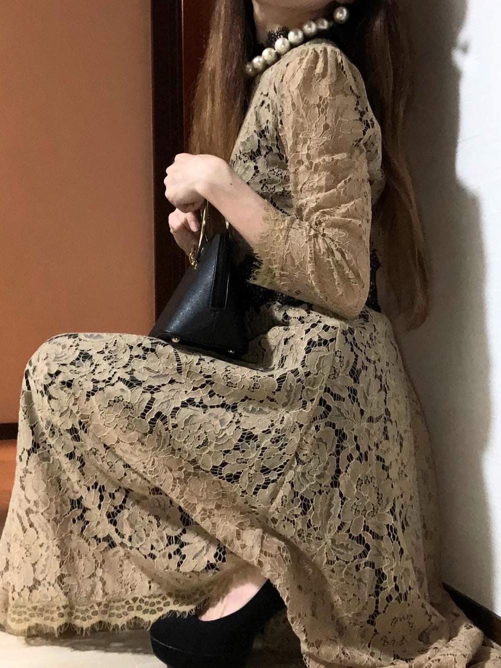 meg948のドレス「花柄総レースミモレ丈フレアワンピース・ドレス」を使ったコーディネート