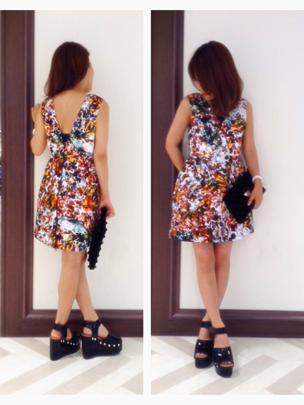 こんばんは!!! 今日は後輩ちゃんとグランフロントでご飯食べて来ました\(^o^)/ スタッフの方々のキャラが個々に濃くってめっちゃ楽しかったです♡♡♡ ✭ 本日は、背中あきのドレスを♡ 実はこれ前後逆で着てるんです( ›◡ु‹ ) 前後逆にすると背中がザックリあいて少し大人な印象に♪ ウエストラインも高めなのでスタイルアップ効果も嬉しいですね◎