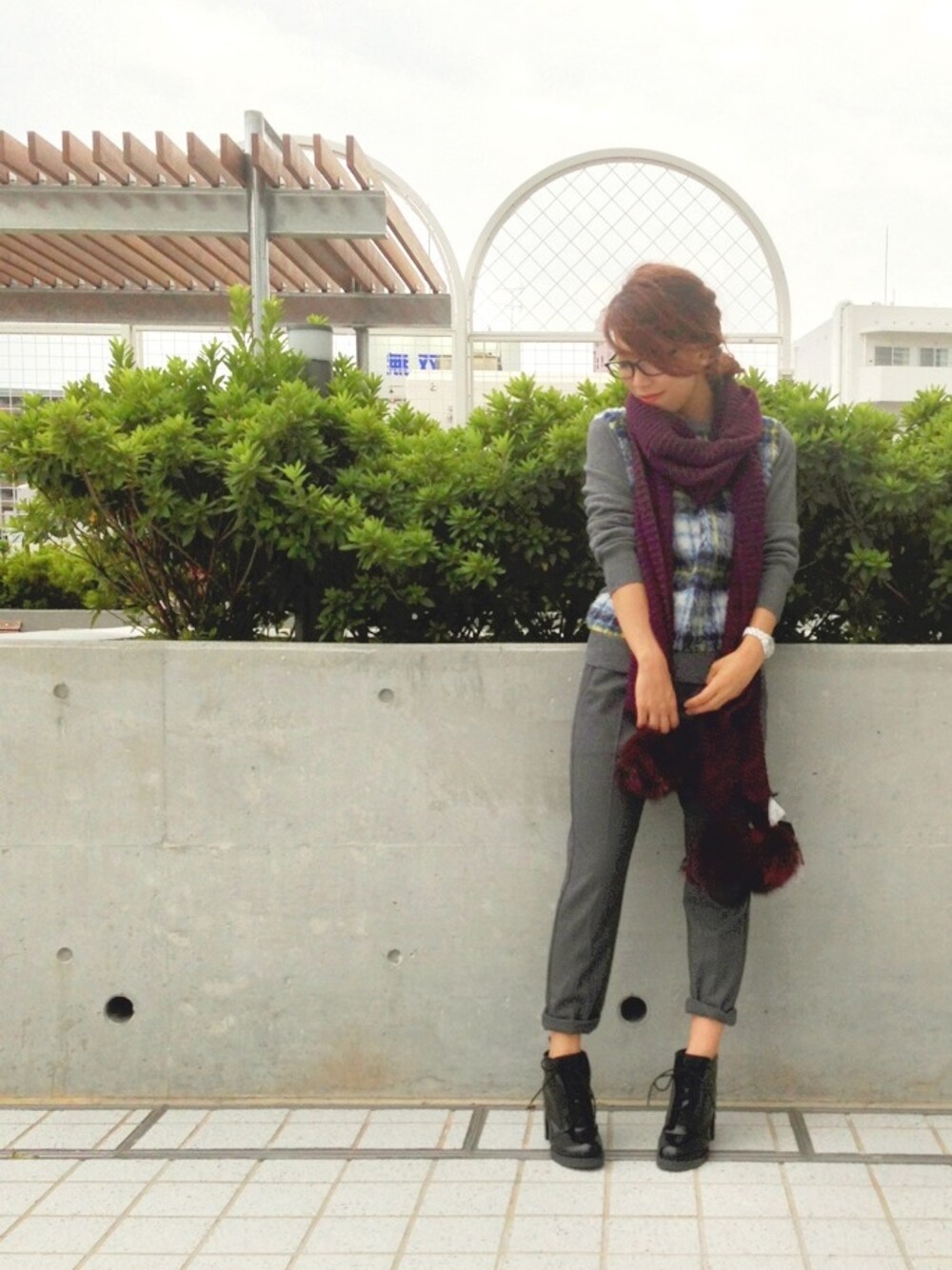 こんばんは✭ ボルドーのマフラーおっきなポンポンがついております○ ざっくり編みでぐるぐる巻くと可愛いです*\(^o^)/* ポージング…少しブリッとしてますが、、嫌いにならないでください。(._.)笑 では… 今日は今から焼き鳥*\(^o^)/* 焼き鳥大好き*\(^o^)/* 酒が飲めないのに、酒飲みみたいなオカズが好きなんです♡ いってきます♪♪ いつもありがとうございます✭感謝♡
