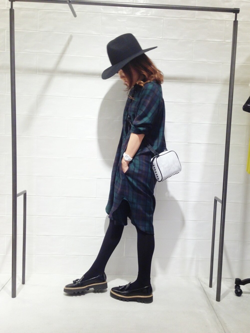 megのワンピース「provis check shirt dress」を使ったコーディネート