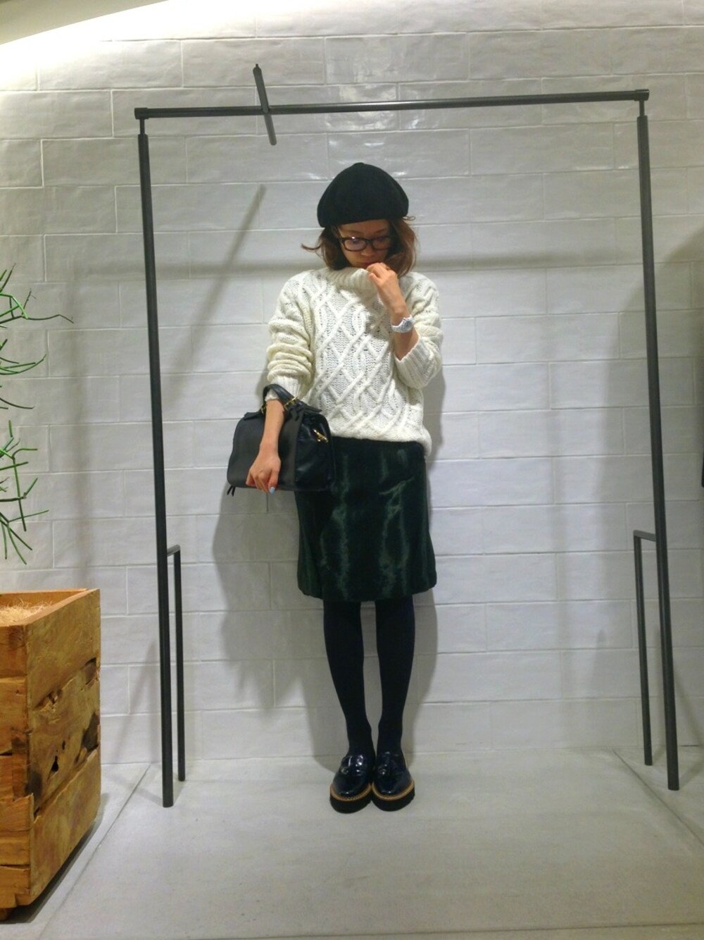 megのニット/セーター「Sugar Rose / cable high neck knit TOPS」を使ったコーディネート