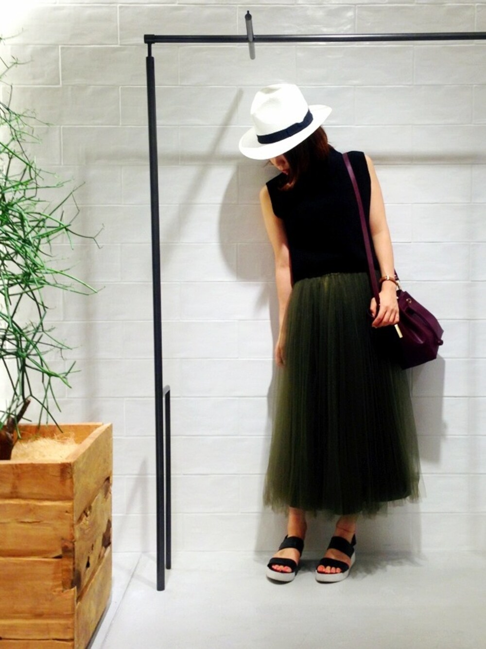 megのTシャツ/カットソー「knit bonding high neck nosleeve(ニットボンディングハイネックトップス)」を使ったコーディネート