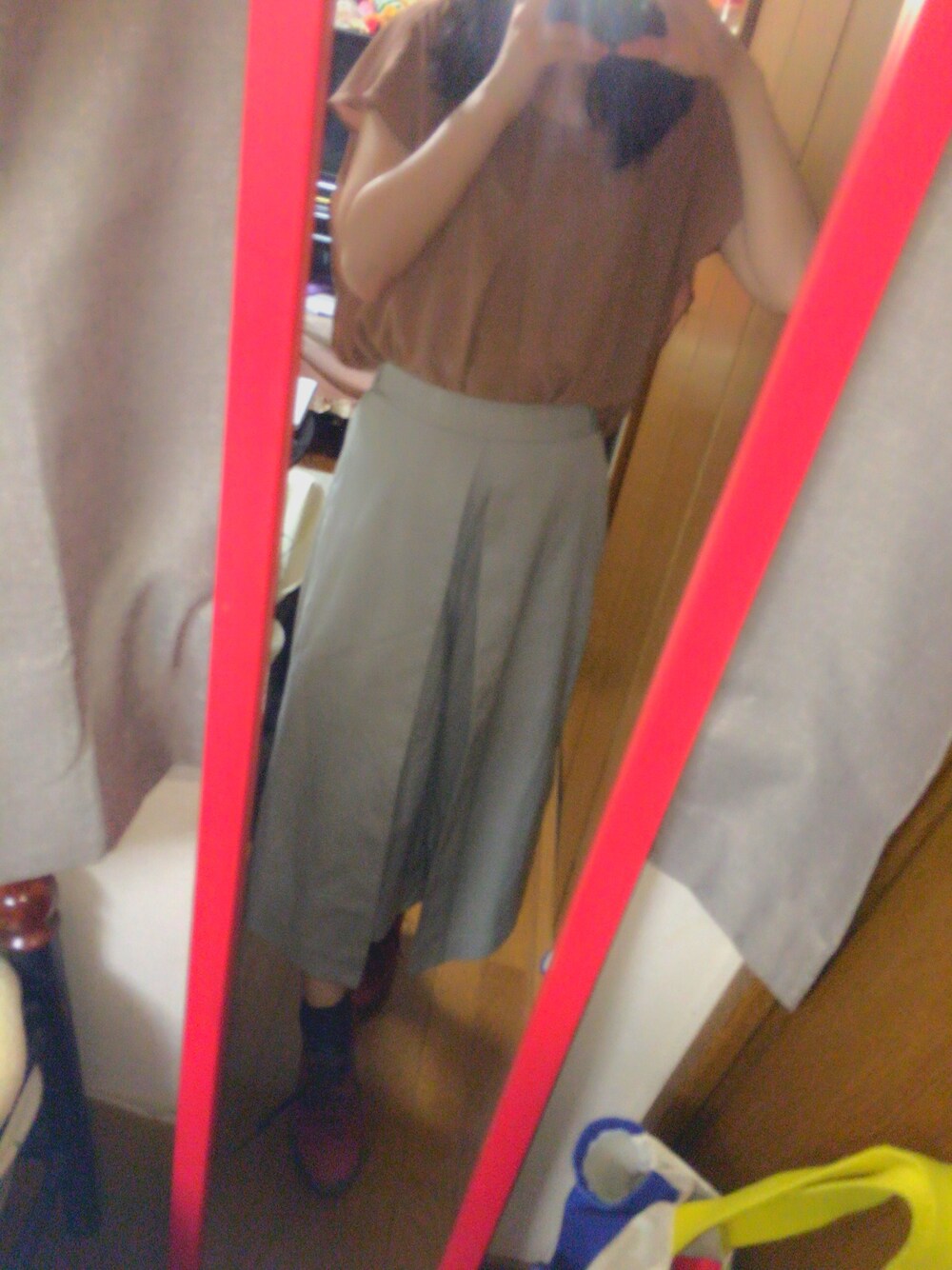 綺麗めだけど、スニーカーではずしてみました。 半袖ブラウスだけど、秋を意識しましたฅ^•ﻌ•^ฅ