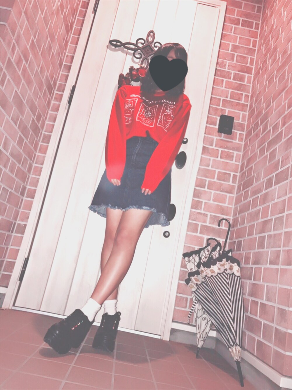 赤い服が欲しくなって古着屋で買いました🙈 赤にデニム生地は最高です。