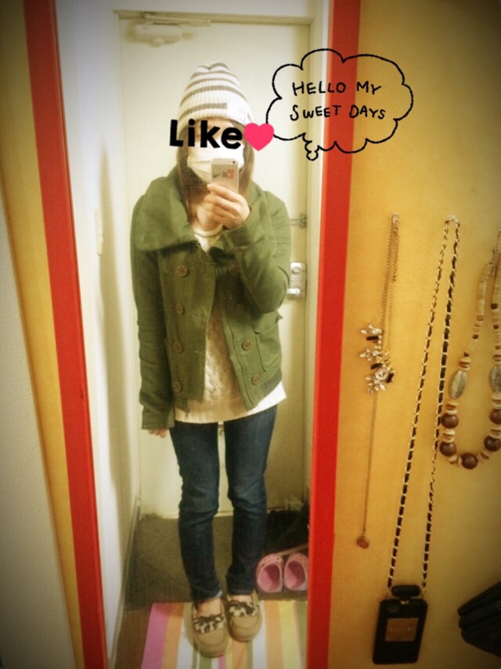 実家に帰るだけのテキトーコーデ 何年か前に買ったSLYのアウターは襟をいろいろアレンジしていろんな着こなしできるのでお気に入り♡