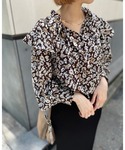 MEGUMIのシャツ/ブラウス「フリルディティールで女性らしく フラワープリントフリルカラーブラウス」を使ったコーディネート