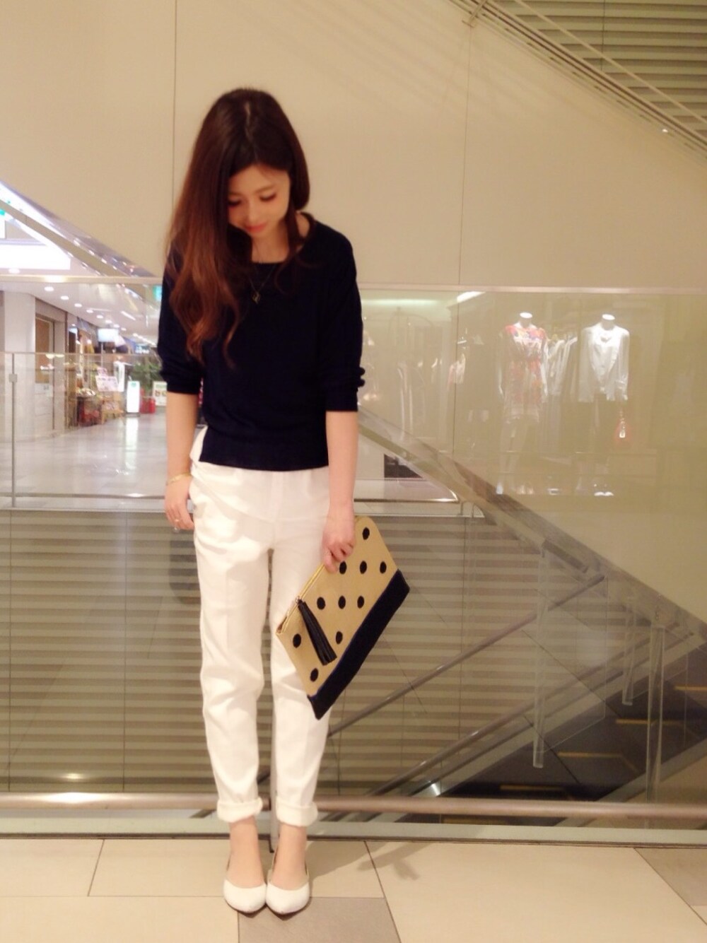 megmi(KATHARINE ROSS 難波店)のクラッチバッグ「【KATHARINE ROSS】ドット刺繍クラッチ」を使ったコーディネート