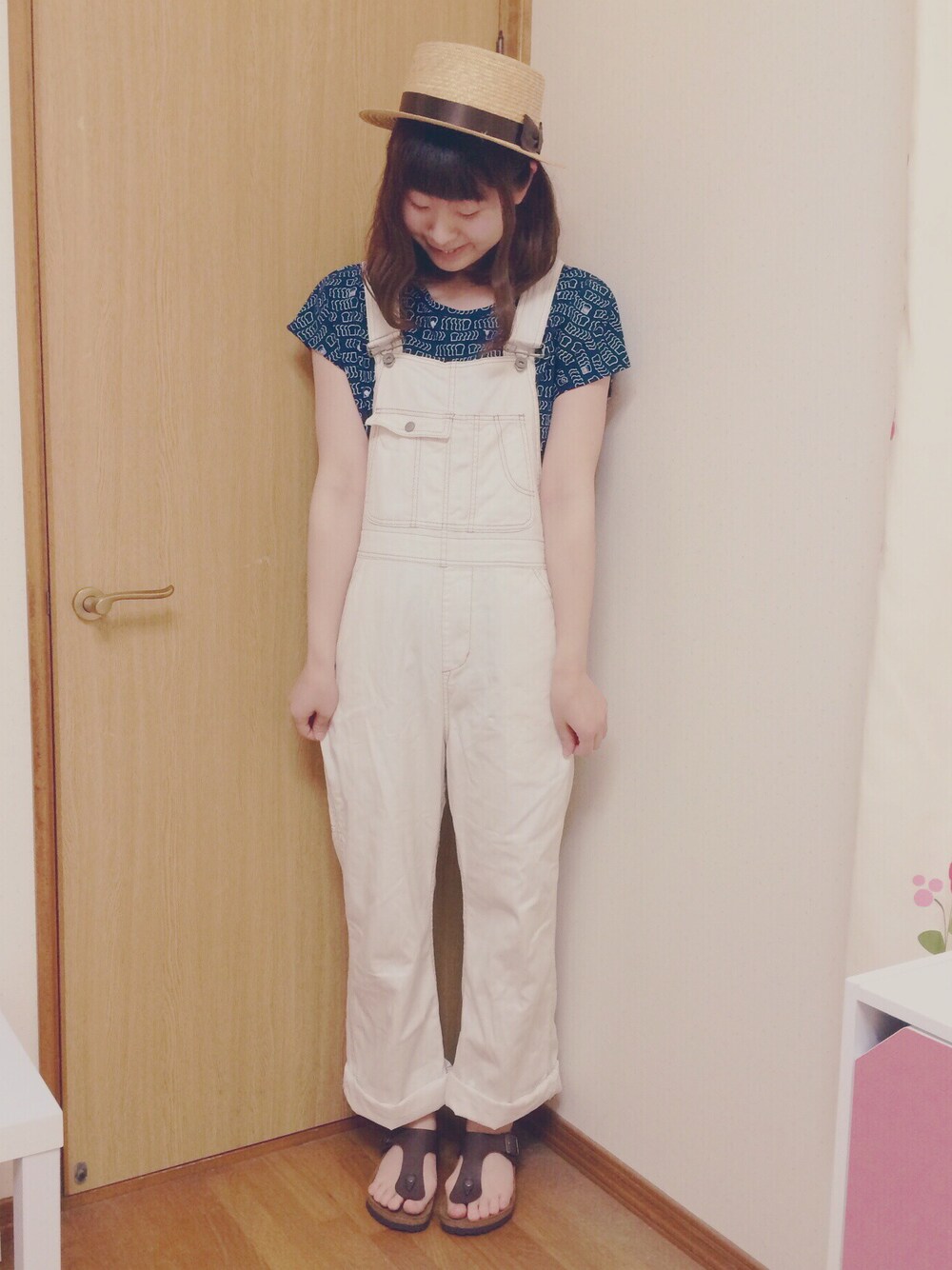 パン柄のTシャツお気に入りです♪ やっと着れてルンルン( *´꒳`*)੭⁾⁾ オーバーオール 古着 サンダル ビルケン