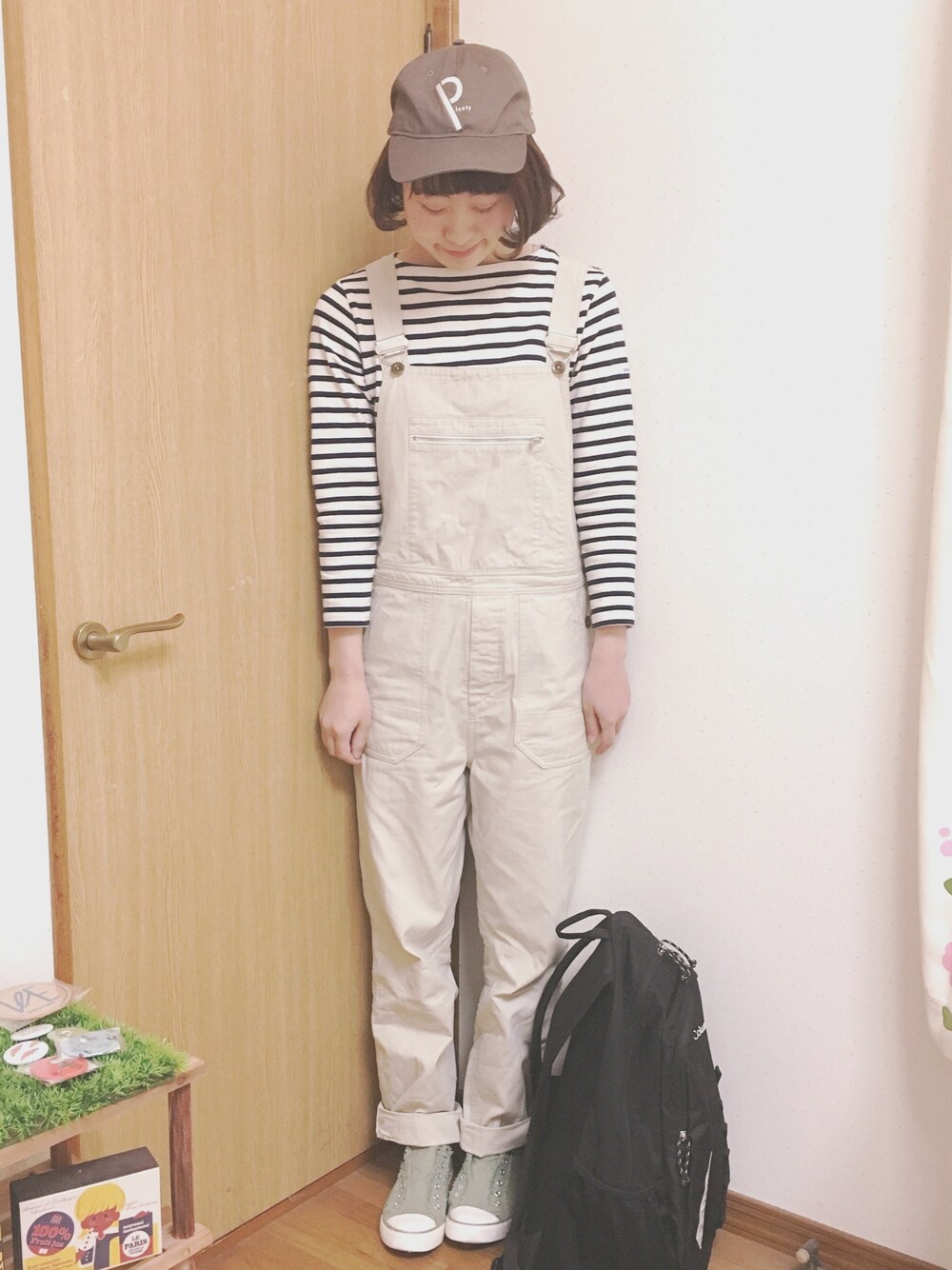 めぐもぐ。のサロペット/オーバーオール「WORKER TWILL」を使ったコーディネート