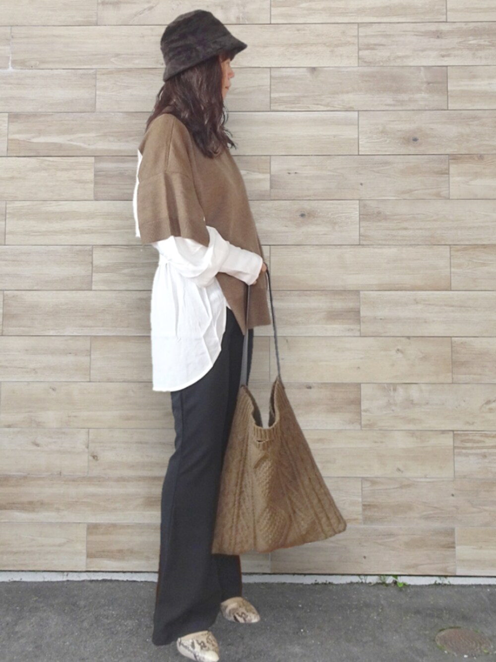 Megchuのショルダーバッグ「ニットショルダーバッグ」を使ったコーディネート