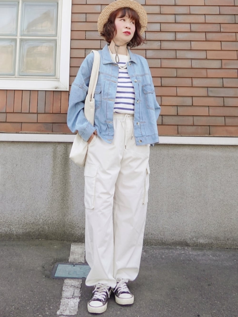 Megchuのハット「ペーパーブレード リボン カンカン帽」を使ったコーディネート