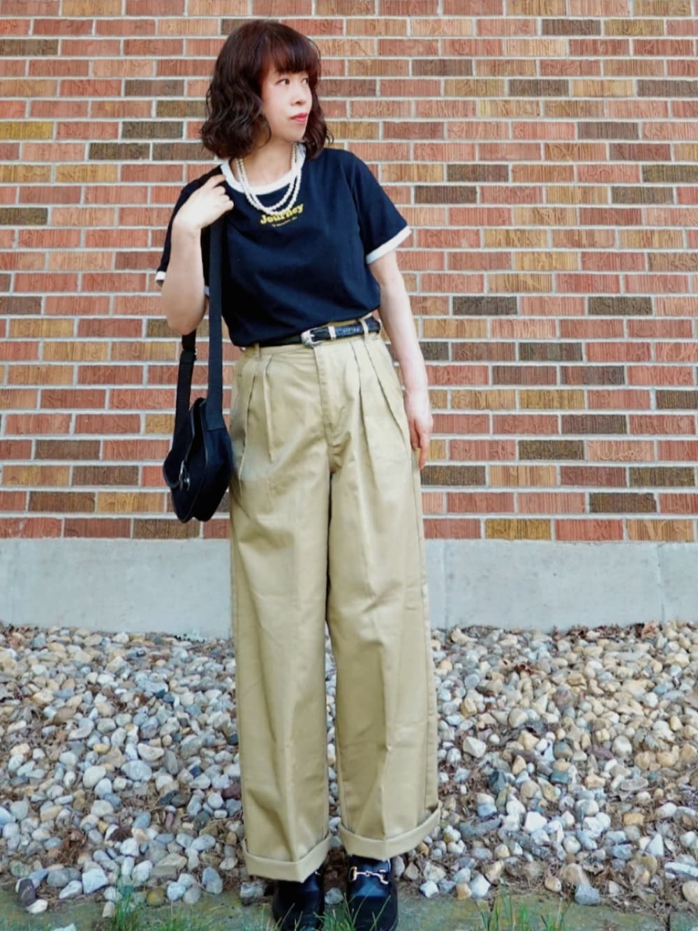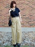Megchuのチノパンツ「ハイウエストタックワイドストレートチノパンツ」を使ったコーディネート