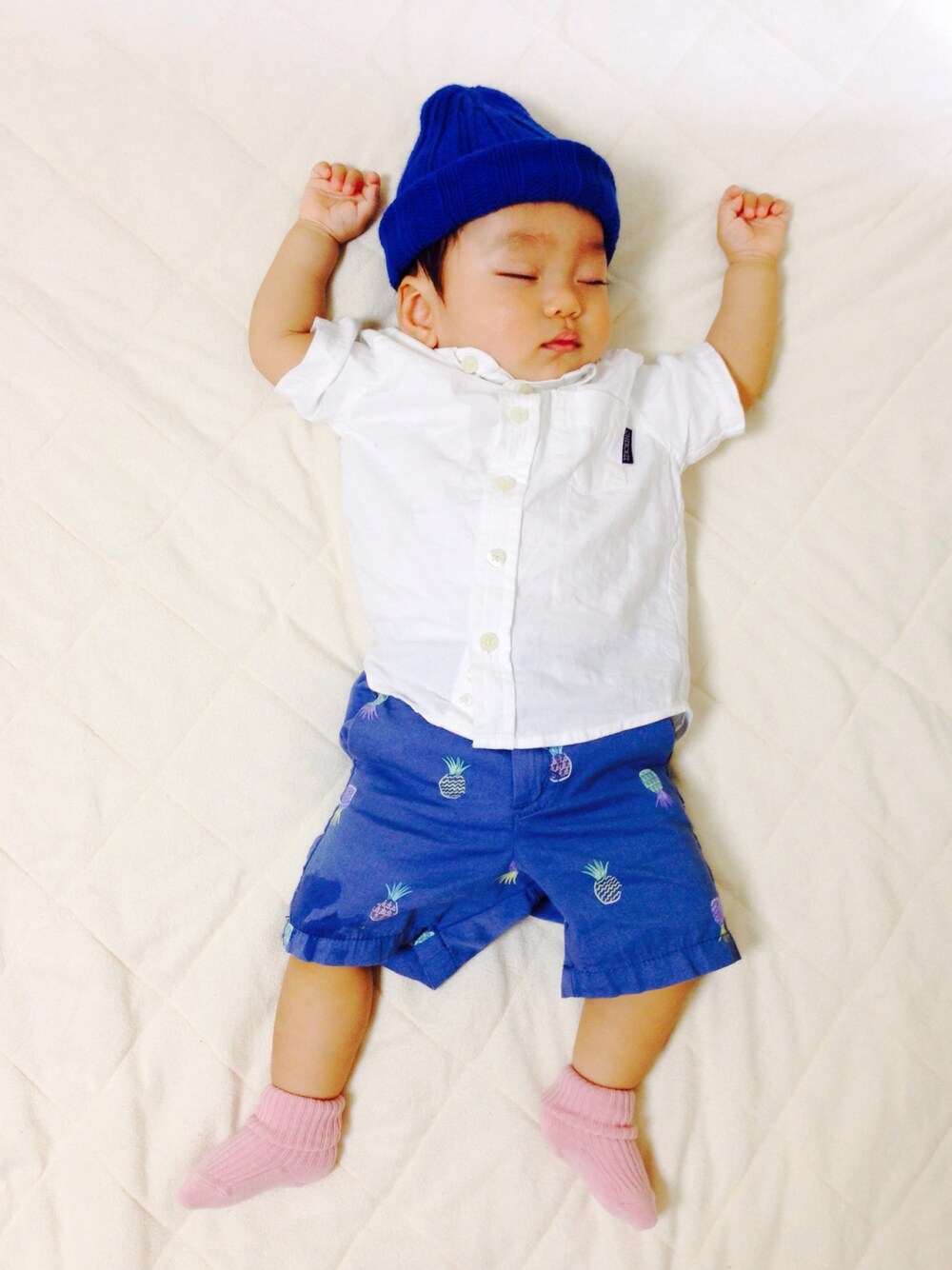 週末コーデです。 いただきもののパンツは初めてのOLDNAVY!パイナポー柄♡ パンツはいつもウエストゴムばかりなので(というかレギンスですね笑)、いっちょまえにファスナーがついててキュンとしちゃいました♡ コメントのお返事が遅くなりがちでごめんなさい(१﹏१)でも楽しみなのでゆっくりですがよろしくお願いします♡ 復帰以降、今のところ奇跡的に保育園からの呼び出しがなく、一方母の風邪はいまだに治らず‥息子が頼もしい限りです。来たれ週末!!!