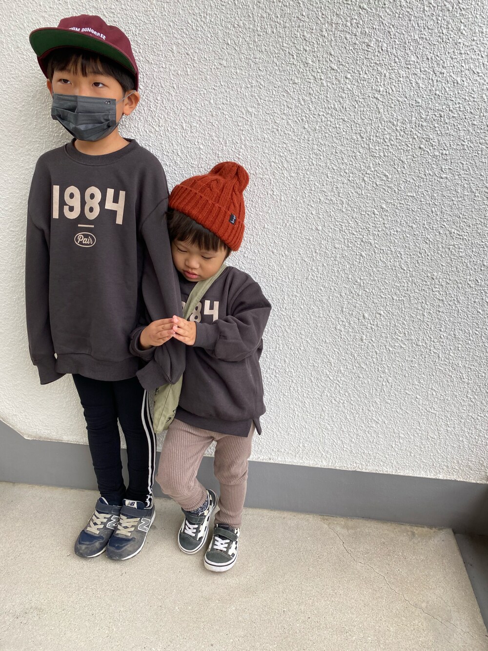 いつもありがとうございます。 【ワード #ダウン 】 疲労や病気などで、物事を続けられなくなること 先週は次男の体調不良から、長男が風邪でダウンして 病院三昧だった1週間。 そして私も、ブタクサの花粉でかくしゃみ止まらず… そんな2人のコーデは、唯一買った秋物のスウェットで リンクさせた通院コーデ。 病院まで徒歩3分だから、帽子いらないけどなーと思うも 外出時は帽子と思う次男。 ばっちりかぶって行ってました