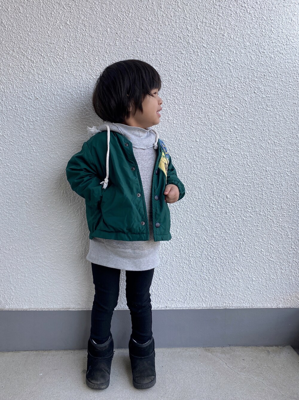 いつもありがとうございます かわいいお姉さまに頂いた、かっこいいジャケットを。 この人、おしゃれな場所へ行くとくは これを着ると必ずいうんですけど、 どうやら、このアウターを着てる日に 「こーちゃん、オシャレなのね」 と、言われたのがきっかけみたい。 ちょっとかわいいところがあるんだなーと 次男を見直したのでした。 そして、これが今年最後の投稿かなー。 来年もよろしくでーす🙏❤️ 4y3m……96cm/15cm