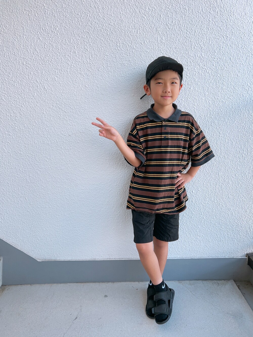 いつもありがとうございます 先日、お化け屋敷に行った日の長男。 暑かったけど、本人伸ばしたい希望に沿って 黒でまとめてみることに 意外といい感じに♪♪ そんな兄さん。 今日は登校日で、平和学習+2時間学校で授業受けて かえります。 8y0m……125cm/22kg