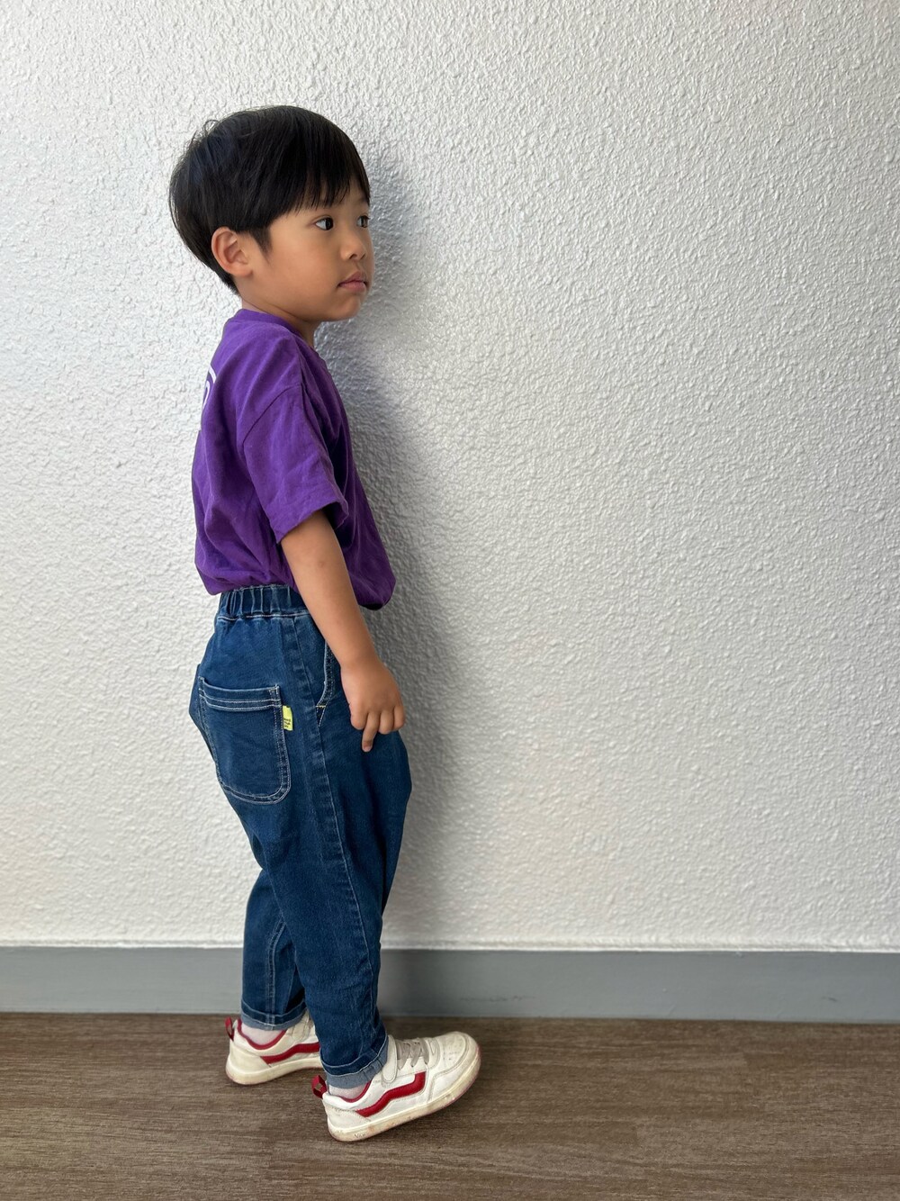 いつもありがとうございます リアルな幼稚園コーデ。 デニム=かっこいいと思っている彼は、 かっこいいだけではなく、 移動ポケットしなくて済むからと、幼稚園にデニムを 履きたがります。 そして、今手持ちのデニム3本しかないので 買ってー‼︎とすごい言われます。笑 5y8m……107cm/16kg