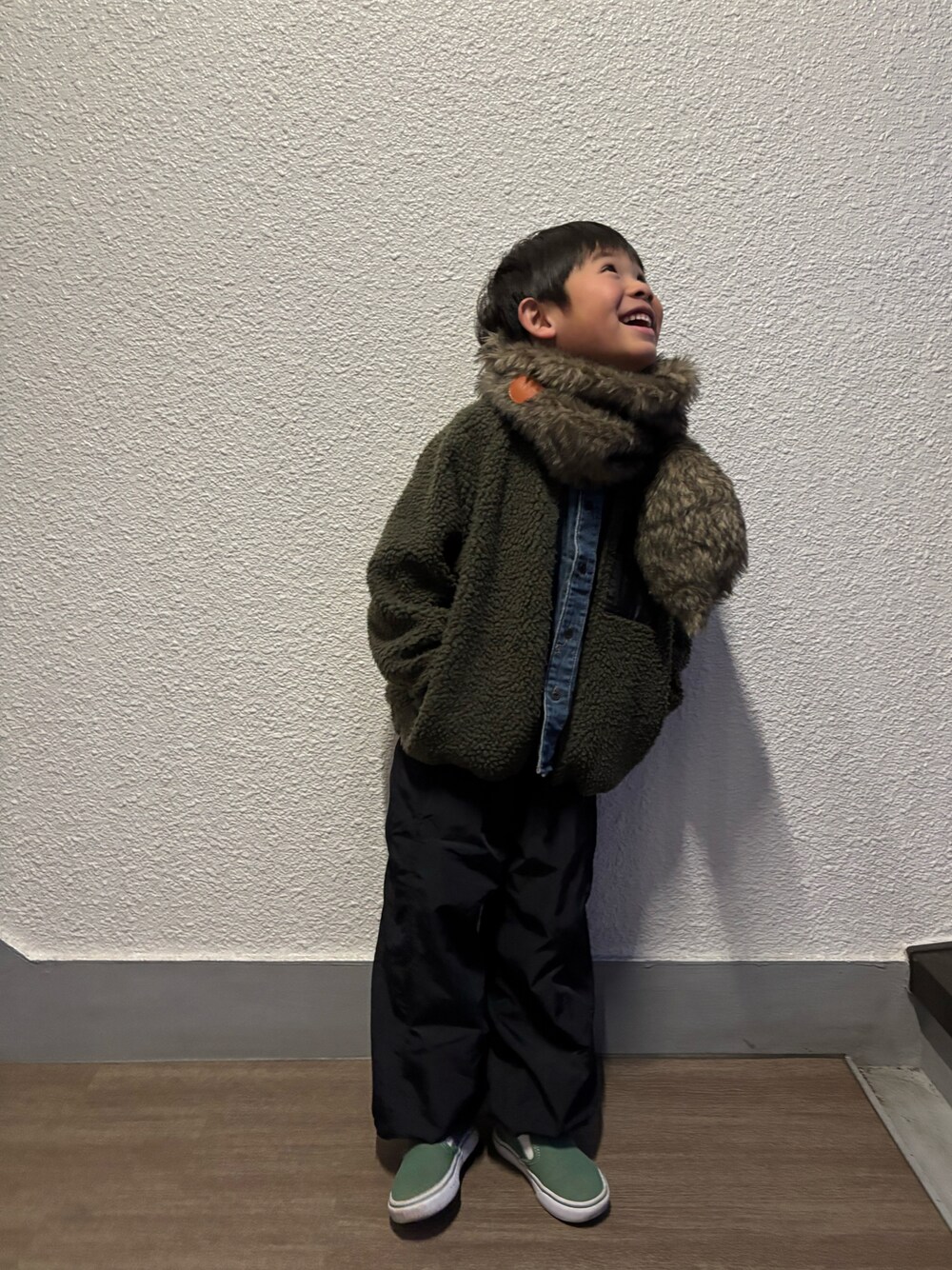 いつもありがとうございます パパが飲み会でいなかったので、 子供たちと、夜のマックへ お友達からお譲り受けた、arkakamaの スヌードをつけて、ご機嫌でした。 7y4m(撮影時)…119cm/20kg
