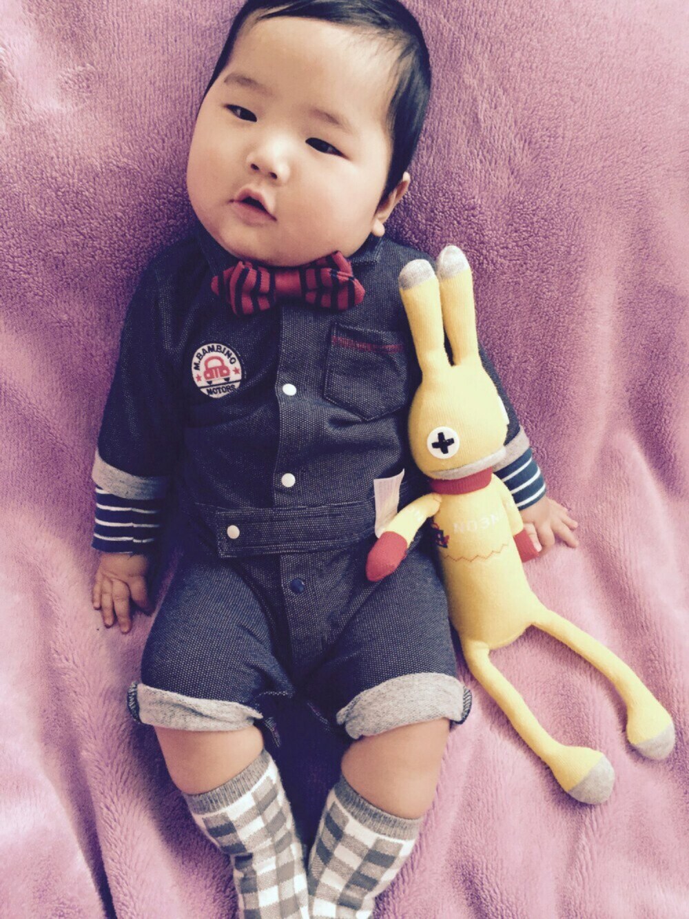 今日のピロさん。 仲良くしてもらってるけいくんママの投稿を見て、これは…‼︎マネして ラスト赤ちゃんフェスに参加しようと。 ロンパースにお着替え🎶 主催者さま、ラスト赤ちゃんフェス参加させてください♡ ちなみに、今日はこの前のお出かけで買った蝶ネクタイとリュックで、 『僕は、オッさんじゃない』アピール。 ピロさん、赤ちゃんなのに、見た目がオッさんぽく。なので、今日は赤ちゃんフェスに便乗し若作り♪♪ そして、キャラ物はあまり好きではないのですが、このBREEZEのリュックは一目惚れ♡ サイズをSサイズにしたのですがまだまだ大きく、歩ける頃にちょうどよくなってるといいなぁーと♡ ちなみに、中身は…オムツと。お仲間のコウイチさんです。(笑)