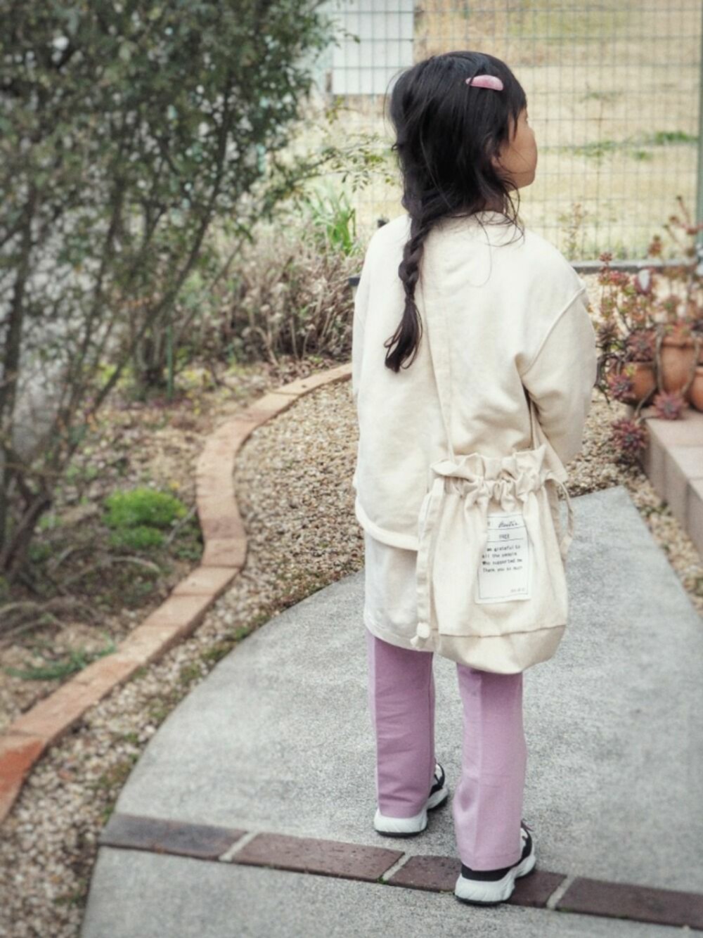 気まぐれ投稿に いいね! ありがとうございます。うれしいです(^-^) 昨日も娘お気に入りのパンツでコーデ ちょうどZOZOから届いた巾着バックもってスーパーへ 笑
