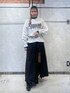 megu46mi(GLOBAL WORK わさだタウン)のニット/セーター「ハイゲージパイピングプルオーバー」を使ったコーディネート