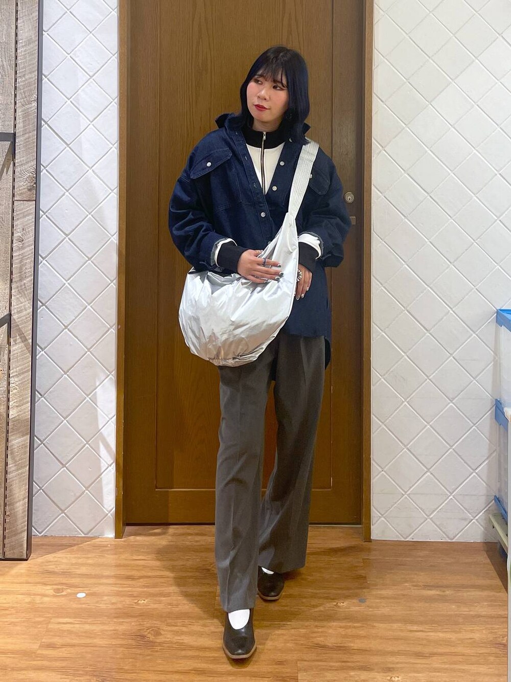 megu46mi(GLOBAL WORK わさだタウン)のショルダーバッグ「軽量シャイニーショルダー/102343」を使ったコーディネート