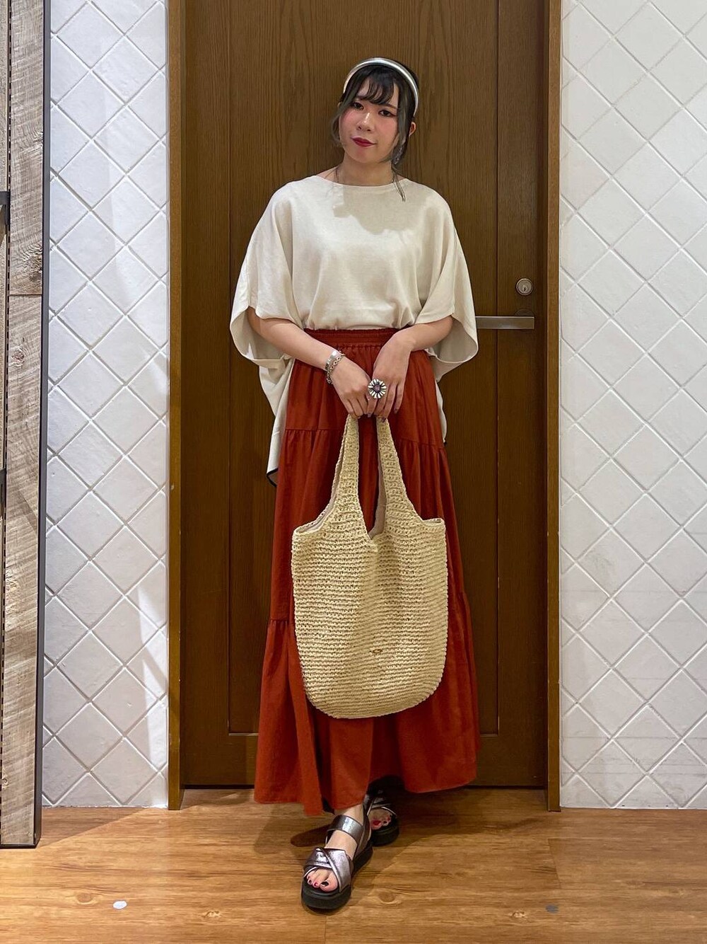 megu46mi(GLOBAL WORK わさだタウン)のショルダーバッグ「雑材ペーパーショルダー/109228」を使ったコーディネート