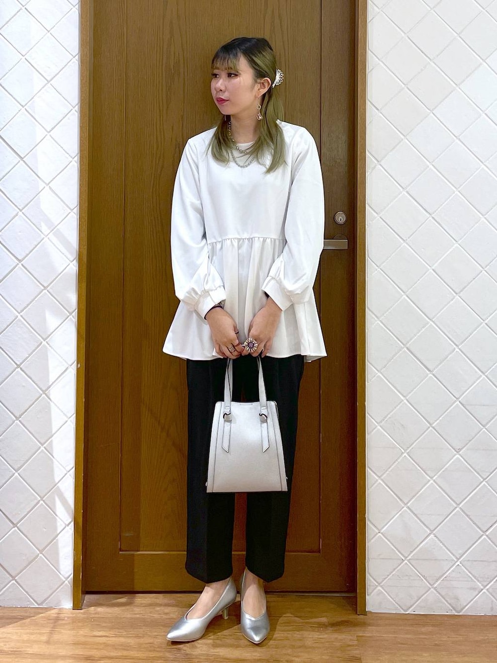 セットコーデ🙌 すごく楽ちん。すごくきれい。 スゴラクストレッチシリーズ✨️ 伸縮性があり、動きやすさが抜群✨️ キレイ見えするカットジョーゼット🙌 静電気軽減ありがたい😭 単品でもそれぞれ着回しの効くデザイン🫶 ギャザーの入ったペプラムブラウスで体型カバーも〇 バックにパール調ボタンが付いているので、360度着映えします🫣 パンツは程良いゆとりがありながらもすっきりとしていて、体のラインを拾いづらいテーパードシルエット🙌 セットアップで冠婚葬祭のシーンにも、単品でオフィスにもデイリーにも、幅広く活躍するコスパ抜群なアイテムです🥹🙌 色々投稿してるので見ていただけると嬉しいです✨️ 《Megumi》のスタッフボードでは ひとくせある大人女子トレンドコーデを更新しています! ぜひフォローをお願いします🥹🫶