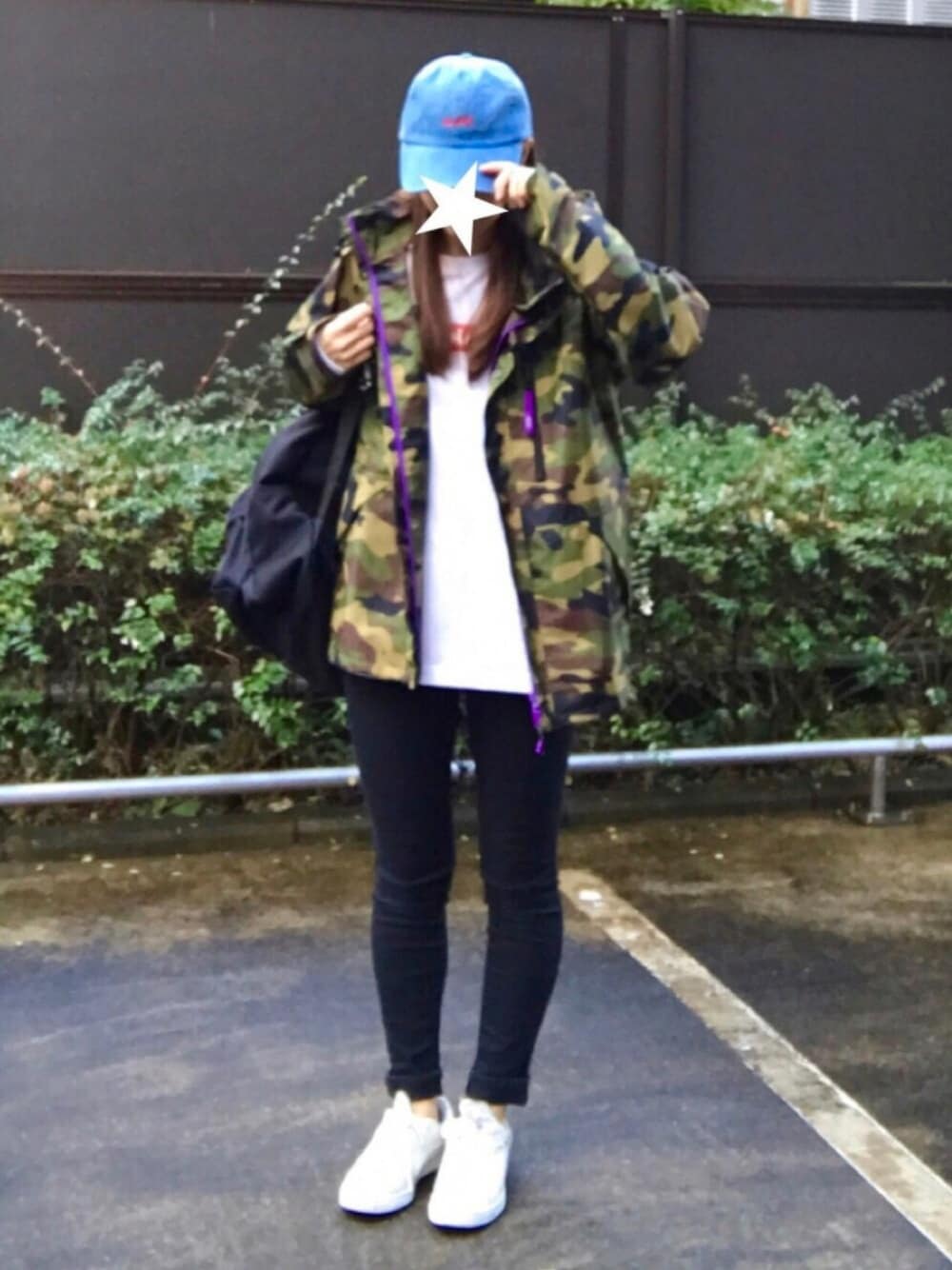 何年か前に買ったカモフラのジャケットをメインに☺︎ 袖にロゴが入っているのとファスナーがパープルなのが好きです☺︎
