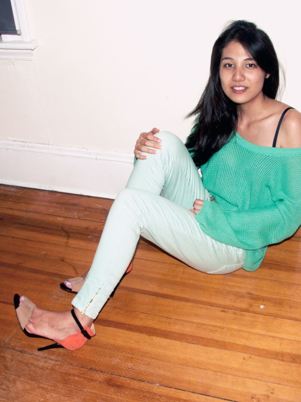 mint on mint 横長写真ですみませぬ;; 新しいお部屋で友達のスーと写真をバシバシ撮ってみました(笑)ミント×ミントは前々からチャレンジしたかったのですが、中々機会(と自信)が無くて出来ずにいたコーデです。折角インドアで撮ってるのだから、と大胆にカラフルなコーデに挑戦してみました。ミントオンミントでも、彩度が微妙に違うとそこまでしつこくないかな、と個人的に思います。靴はヌード×オレンジ、ベルトは見えませんがゴールドです。 ニット:Forever 21 パンツ:ZARA サンダル:ZARA ♬ Jason Mraz - I Won't Give Up