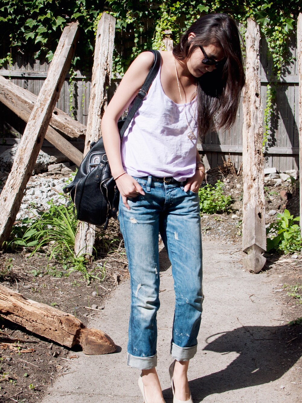 lilac ライラック、ラベンダー等のパープルカラーにハマっています。このタンクはこのシーズン何回着回した事か・・・。今回はワークカジュアルをテーマにコーデしてみました。アメリカだと大体私服OKな仕事場は基本ジーンズもOKなので、私もしょっちゅうジーンズを履いて行ってます。でもそういう時は綺麗めのパンプスを履いてバランス良く :-) もちろんタンクのままじゃ少しカジュアル過ぎるので、ブレザーを羽織りますが、コーデスナップの時だけは上着を脱ぎました。9月に入った事ですし、そろそろ肌寒くなるだろうと思いきや、昼間はまだ暑くて服装に悩みます。 タンク:H&M ジーンズ:DIESEL パンプス:ELLEN TRACY バッグ:Melie Bianco サングラス:Ray-Ban Classic Wayfarer ネックレス:Buffalo Exchange ♬ Rozzi Crane - Let's Get It On (Marvin Gaye Cover) http://www.youtube.com/watch?v=1dCAAl5RUT4 ※ Rozzi Crane中毒です。どのビデオにするか悩みましたが、とりあえずお気に入りのやつを。是非彼女の他のビデオも見てみてください!