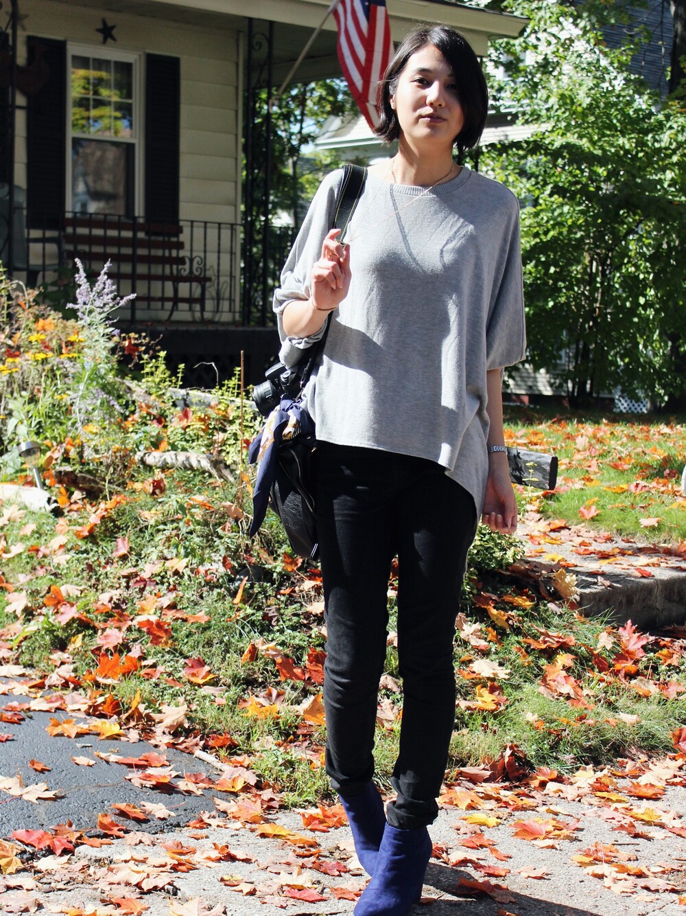 election アメリカは只今選挙シーズン真っ直中です。アメリカの人々は政治の話しになると凄くヒートアップするのでビックリします。それくらいの熱さが日本にもあればなぁとたまに思います。 それはさておき・・・最近この黒スキニーばっかりですね(笑)バイトで黒パンツ着用必須なので、自然と黒パンツに合う服装を孝えてしまうのです。このドルマンスリーブのトップスは着心地がいい上に、黒のパンツとも相性が良いので、着回し率がとても高いです。いつもはこれにTOPSHOPの黒ブーツを合わせるのですが、さすがにリピートしすぎなので(笑)今回はブルーのブーツで。 トップス・ネックレス:Buffalo Exchange(古着) スキニー:H&M ブーツ:Forever 21 バッグ:Melie Bianco ♬ PSY - Gangnam Style (この曲の中毒さと言ったら・・・アメリカのラジオでもちゃっかり流れています/笑)