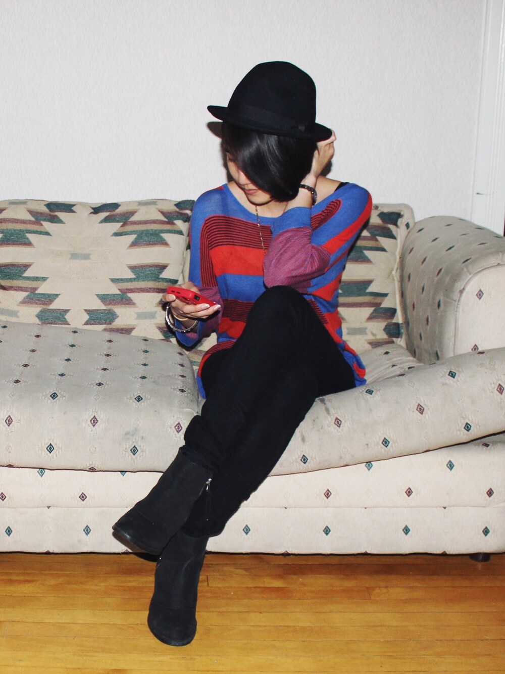 redecorated 友達のトップスを勝手に着てみました(笑)お洋服スワッピング楽しい〜^^ 友達んちに遊びに行くと必ずクローゼットを漁ります・・・。迷惑きまわりないですね(笑) トップス:Marshalls スキニー:H&M ブーツ:TOPSHOP 帽子:ユニクロ ネックレス:Forever 21 ♬ Bob Marley - Jammin