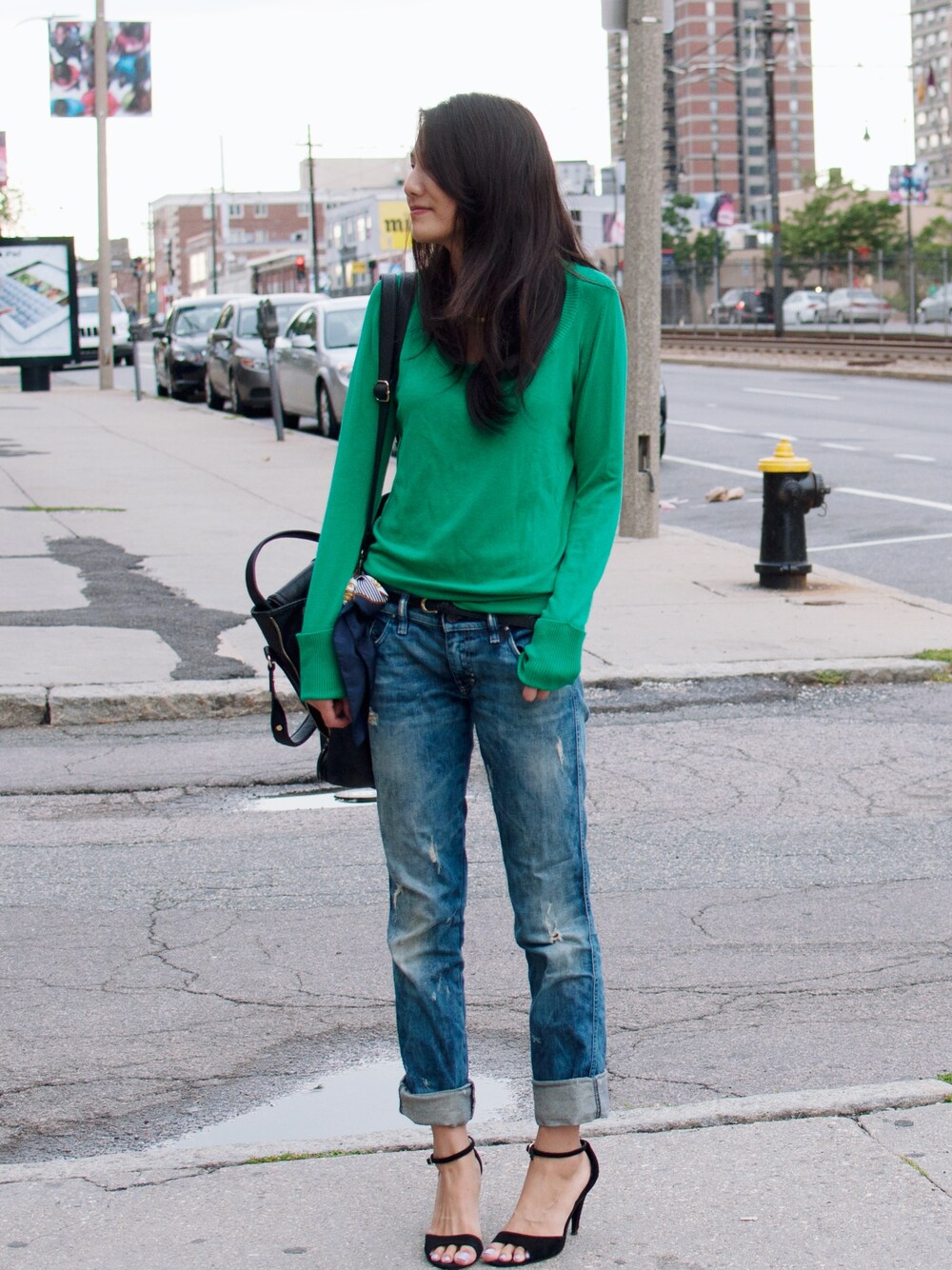 BU Central ボストン大学の前でパシャリ :-) 緑のニットはザラのセールで買いました。着心地が良いし、綺麗な緑色なので、黒ずくめな服装になりがちな冬にもリピートする事間違い無し。この日は8月の中旬の割には少し肌寒かったので、これ1枚でシンプルに着ました。シンプル過ぎないように、ボトムスはダメージジーンズで。小物は黒で統一しました。あんまり見えませんが、首元にはゴールドのチョーカーを。 ニット:ZARA ジーンズ:DIESEL サンダル:Steve Madden バッグ:Melie Bianco チョーカー:古着 ♬ Chris Brown - Don't Wake Me Up