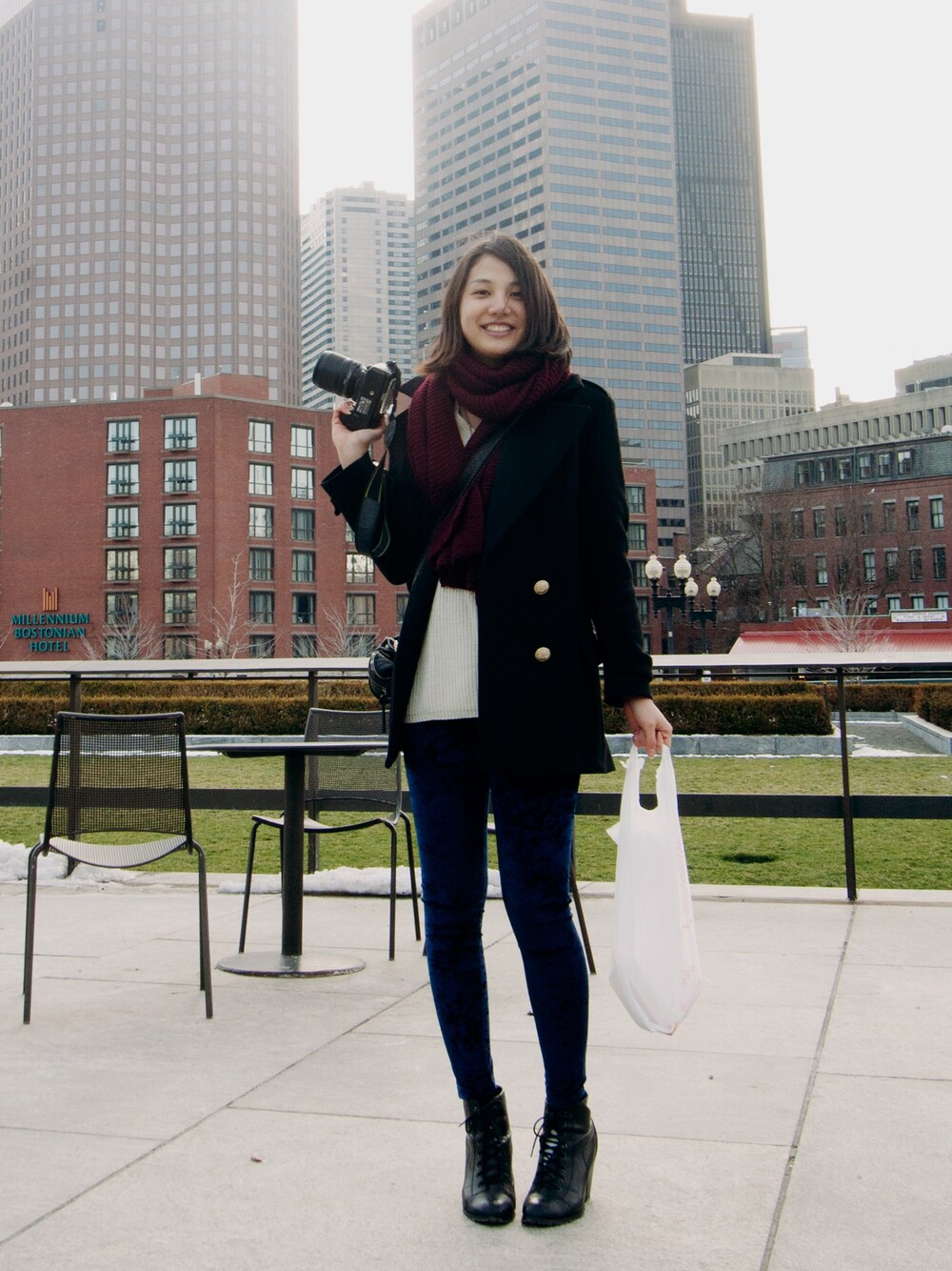 velvet leggings 新年早々インフルエンザになりました。熱でダウンしてもう4日目です。このコーデは元気がなくなる前の写真です(笑)yesstyleで買ったロングニットとベルベットレギンスを一緒に合わせてみました。2枚目の方がベルベットの素材がもっと伝わっていると思います。最近になってユニークなボトムスの魅力に気付き、色んな物を買うようになりました。おかげでオシャレの幅が広がったかなと感じはじめています。3枚目はノースエンドから撮ったボストンの一望です。右端に見えるのがボストンの有名な「ユニオンオイスターハウス」というシーフードレストランです。生ガキがおいしいお店です。ちょっとしたボストン情報でした。 ニット:yesstyle ベルベットレギンス:yesstyle コート:ZARA ブーツ:Urban Outfitters バッグ:古着 マフラー:ZARA ♬ Pentatonix - Thrift Shop (Macklemore & Ryan Lewis cover)
