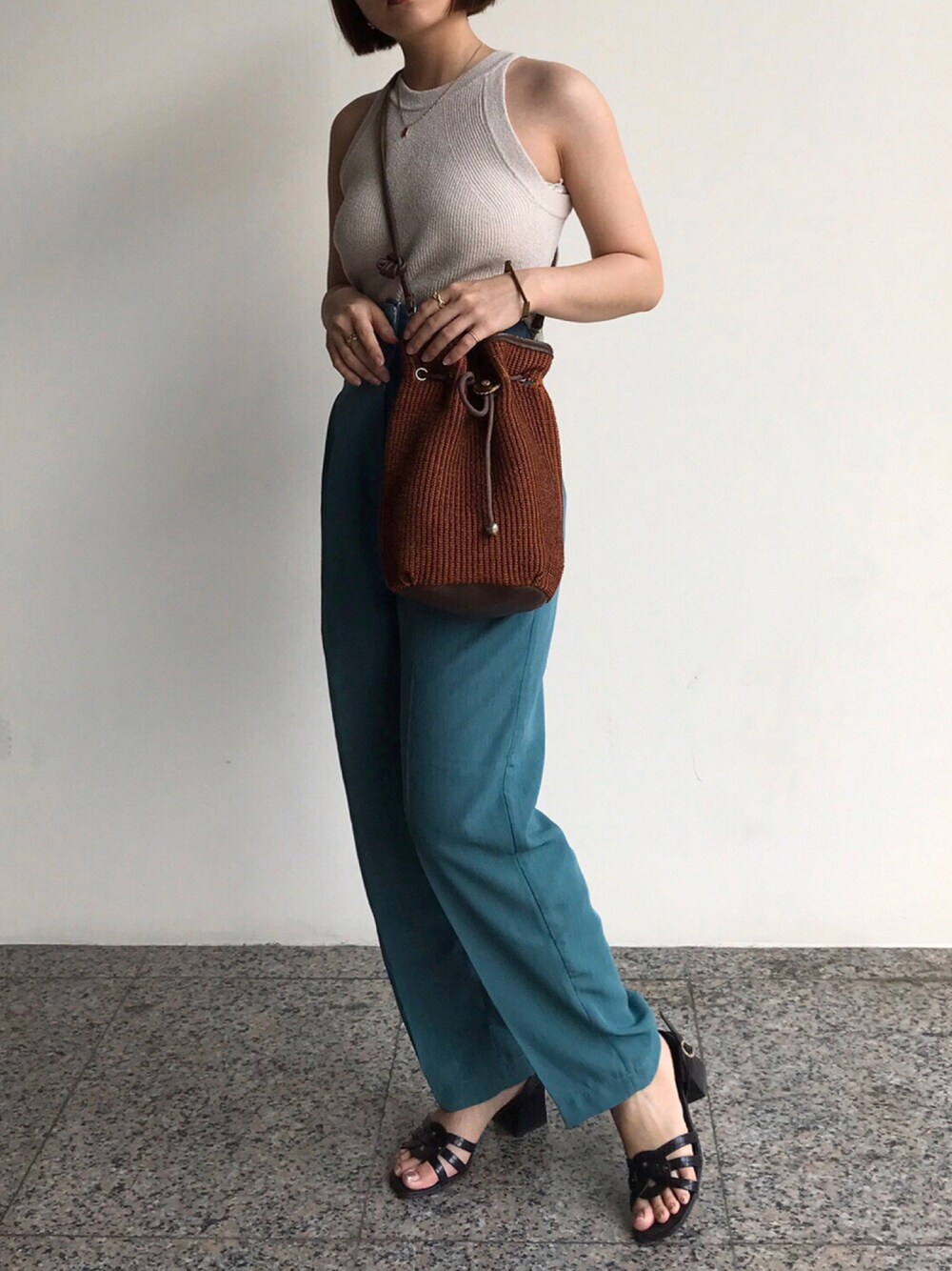 ♾ Beige x Green · この前の明るい配色!🍃 去年購入した#gu のニットタンクトップ ゆったりしてて涼しく着れる~ 今年も#vintage パンツに合わせた🙌 · · 之前的明亮配色!🍃 去年買的gu針織坦克 很舒服也涼爽~ 今年也是搭配vintage 的褲子🙌 · · · インスタ→@ming_en__
