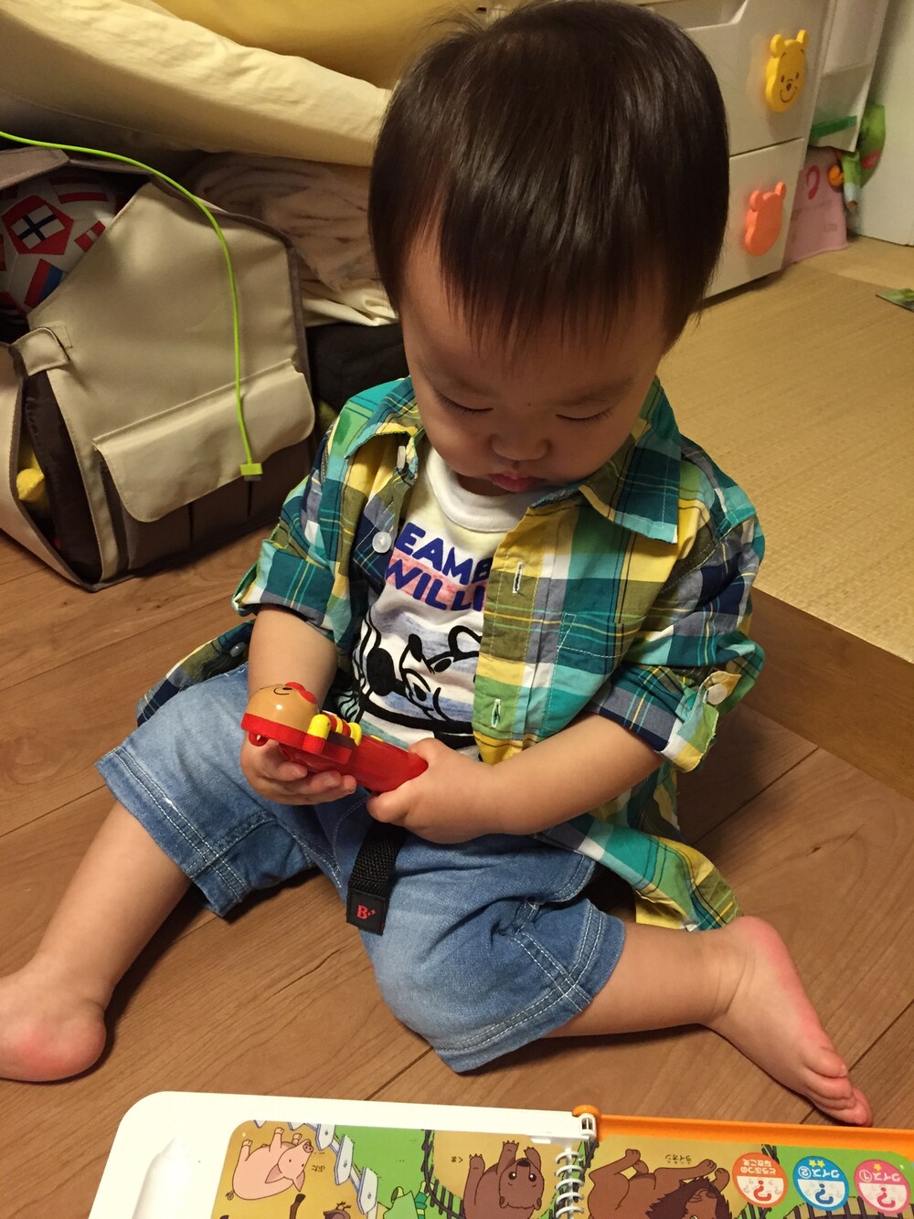 少し肌寒かったからシャツ着せたら一瞬で脱がれました。 チェックシャツ色がかわいすぎる! アウトレットに行ったら安田大サーカスに遭遇! かなたん、団長に連れ去られビックリさした!