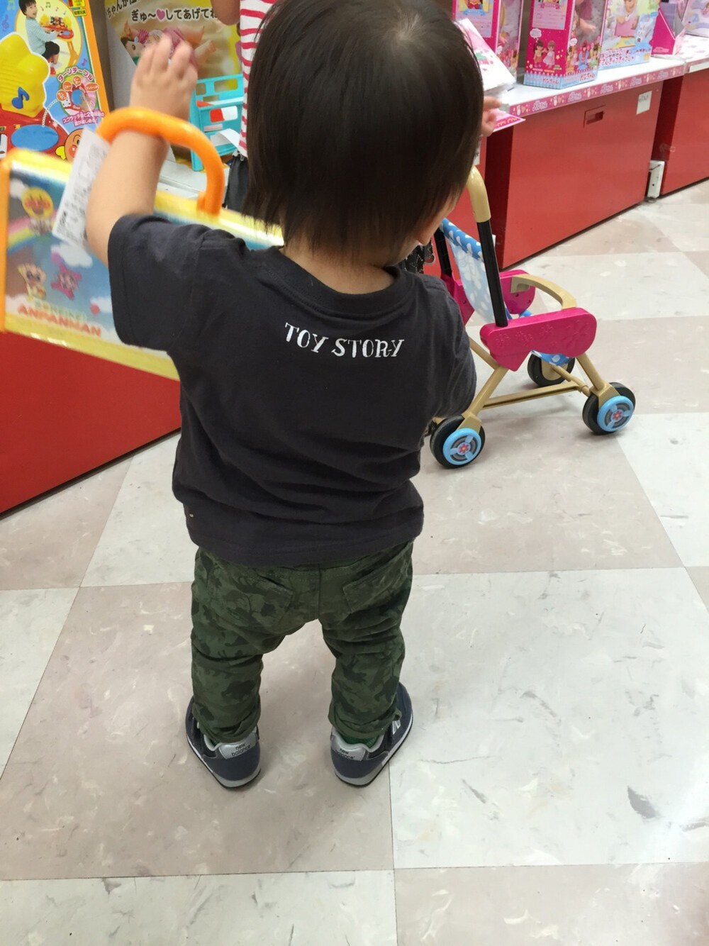 おもちゃ屋にて、アンパンチ、アンパンチって言って中々帰れない感じでした😱😱 アニマル柄のカモフラパンツ。 ずーっと欲しいって思ってたのセールで購入! かわいいわー。 ニューバラともむっちゃ合うやん! 雨も降って寒かったから長ズボン。 色味的にも秋っぽいかな? ただ、黒いだけなんかも(笑) 小窓はアンパンマンのかばんを買って欲しくて大人をくぐりぬけるのに必死になってるかなたん。