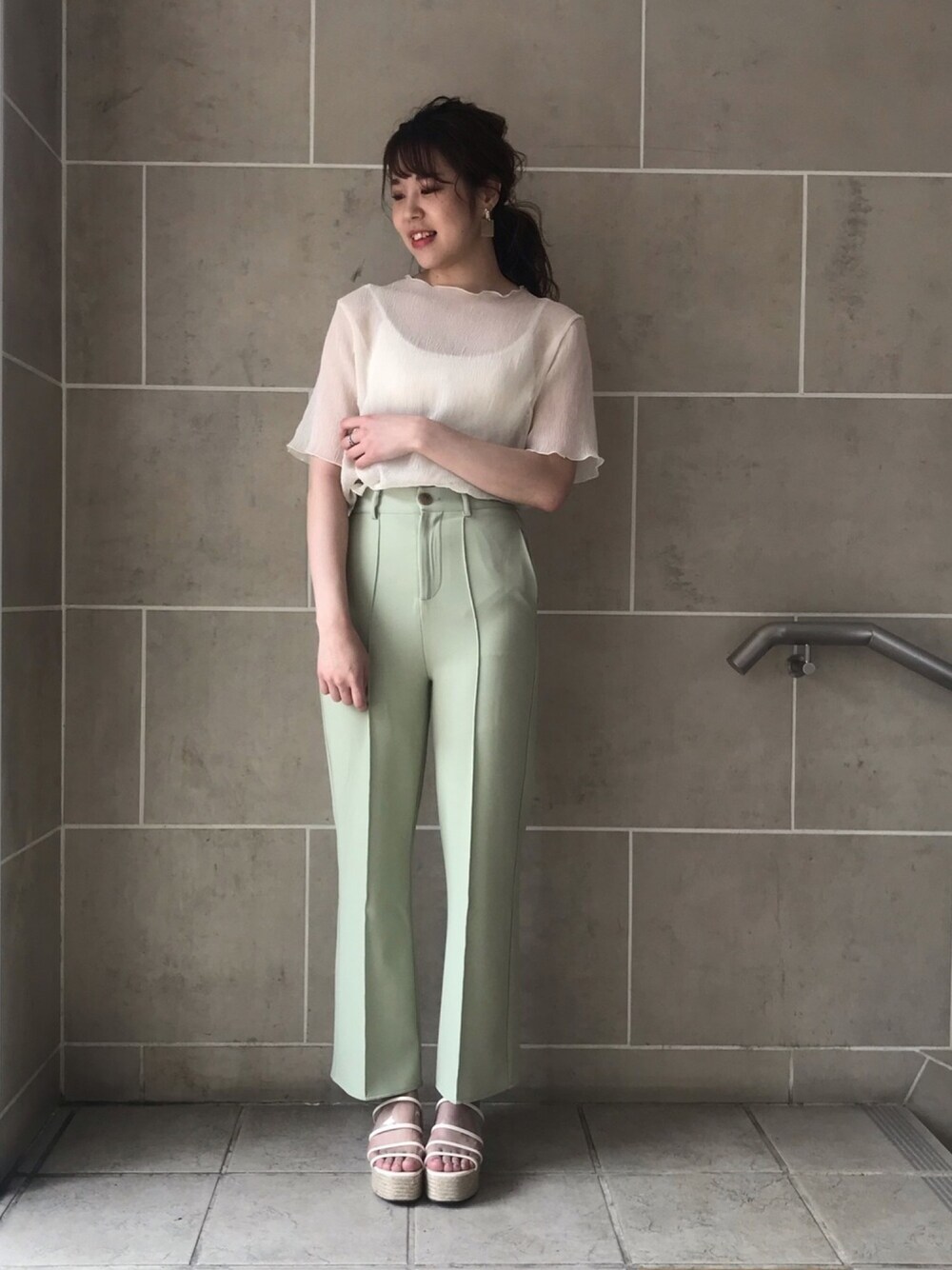 シアーな素材とミントカラーで今年らしく♡ カラーが映えるコーデにしました♪