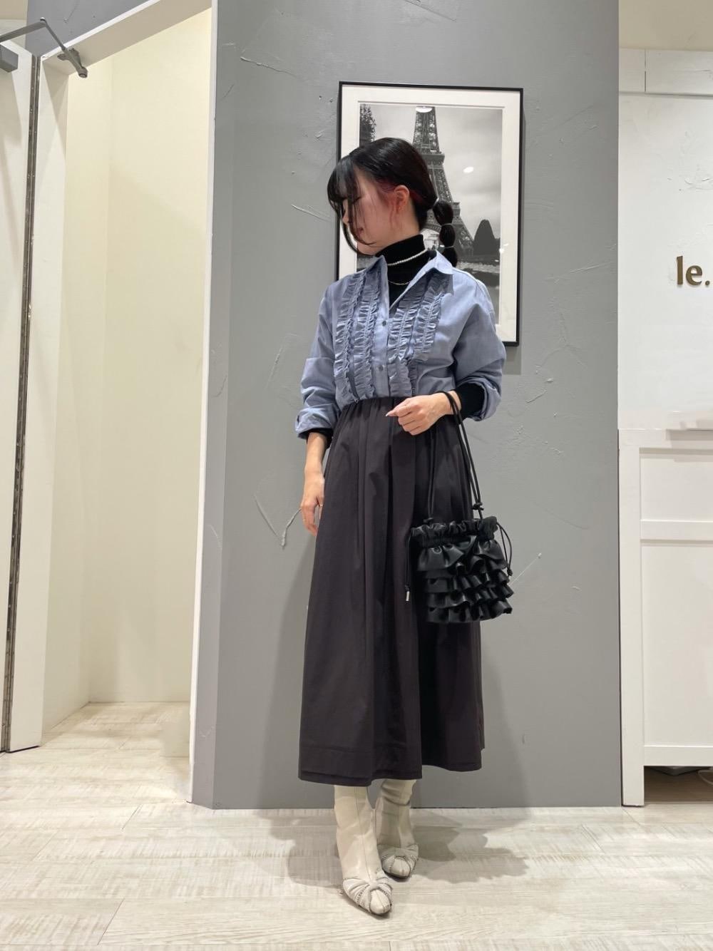 20代/ 160cm/骨格ウェーブ /普段サイズ36〜38/着用サイズ 【リブタートルニット】 サイズ感:程よく身体に沿うサイズ感 素材感:ストレッチ性があり滑らかで柔らかい 着用感:重ね着しやすい厚さで、春先には1枚でも◎ 【フロントフリルレギュアーカラーシャツ】 サイズ感:程よくゆとりがあり、お尻にかかる長さ 素材感:綿100%でハリのある扱いやすい素材 着用感:甘くなりすぎない大人かわいいブラウス 【ナイロンタックギャザーダブルヘムスカート】 サイズ感:ウエスト総ゴムで履きやすい 素材感:ナイロン素材でとても軽い 着用感:程よいボリューム感のあるスカート