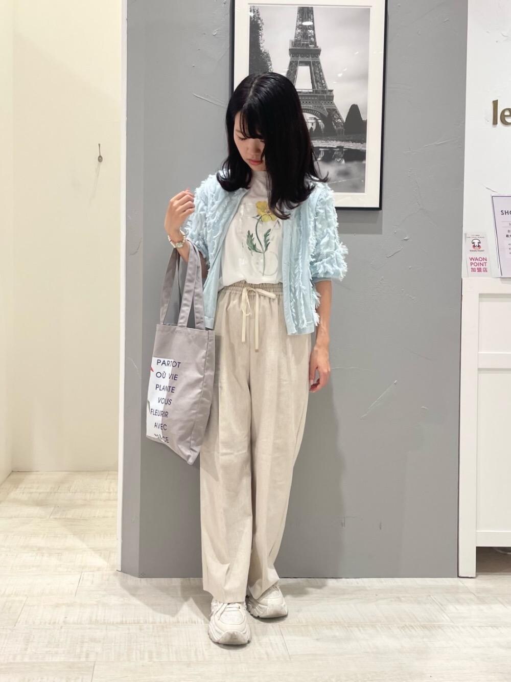 20代/160cm/骨格ウェーブ/普段サイズ36〜38/着用サイズトップス38 パンツ36 【TOLIGHT×le.coeur blanc ハクプリントTシャツ】 サイズ感:ピッタリすぎずちょうどいいサイズ 素材感:綿100%で肌触りが良くほんのり透け感あり 着用感:爽やかでこれから大活躍の1枚です◎ 【アサレチックイージーワイドパンツ】 サイズ感:ウエスト総ゴムでストレスフリー 素材感:麻混でさらっと涼しい素材、ストレッチ性あり 着用感:ストンと綺麗に落ちてスッキリ見えするパンツ 【フリンジニットカーディガン】 サイズ感:腰骨くらいの長さのコンパクトなサイズ 素材感:透け感のある柔らかい素材 着用感:フリンジが華やかでデザイン性があるのでシンプルなボトムスに合わせるのがおすすめです◎