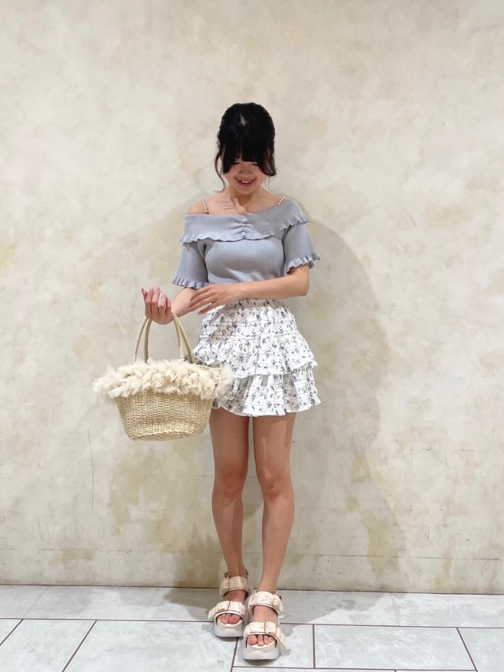 トップスの肩のパールが取り外し可能です◎ スカートは中がパンツなので安心して履いていただけます!