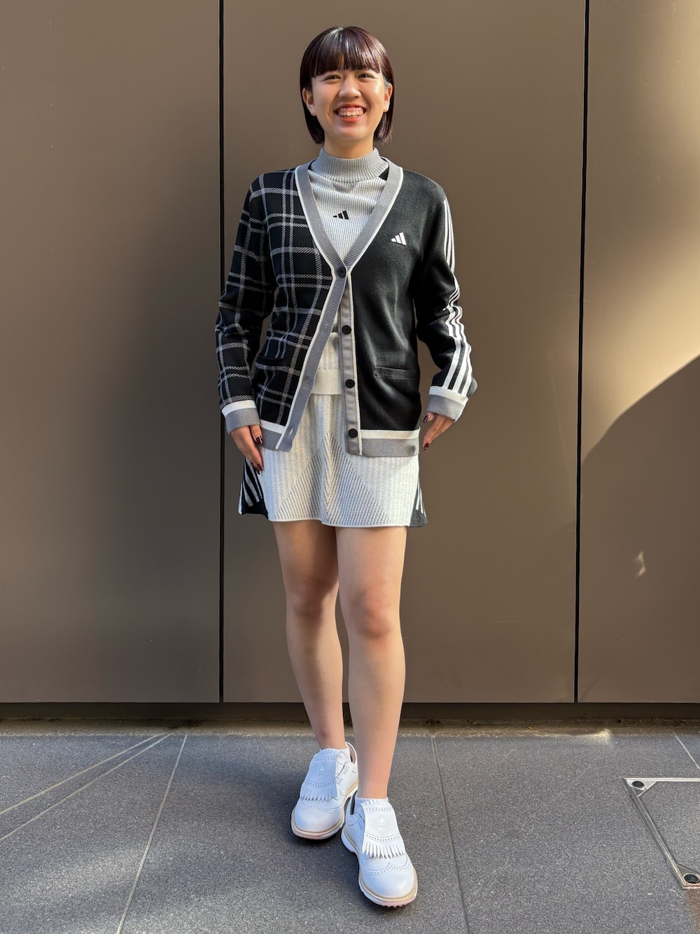 MU(アディダス ブランドコアストア 銀座)のカーディガン/ボレロ「アシンメトリーパターン スリーストライプス カーディガン【adidas Golf/アディダスゴルフ】」を使ったコーディネート