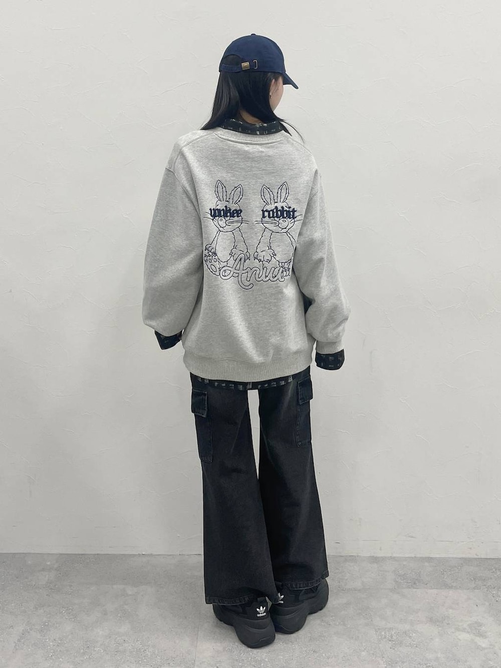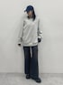 ご覧いただきありがとうございます✨️ ブルーロックコラボアイテム⚽️ 【PAGEBOY×千切 豹馬】デニムパンツを着用しています!セミフレアのシルエットが細見えします◎ カラーはブラック,ブルーの2色展開です! ヤンキーラビットがポイントのスウェットも普段使いしやすくて可愛いです♡ グレーを着用しています!