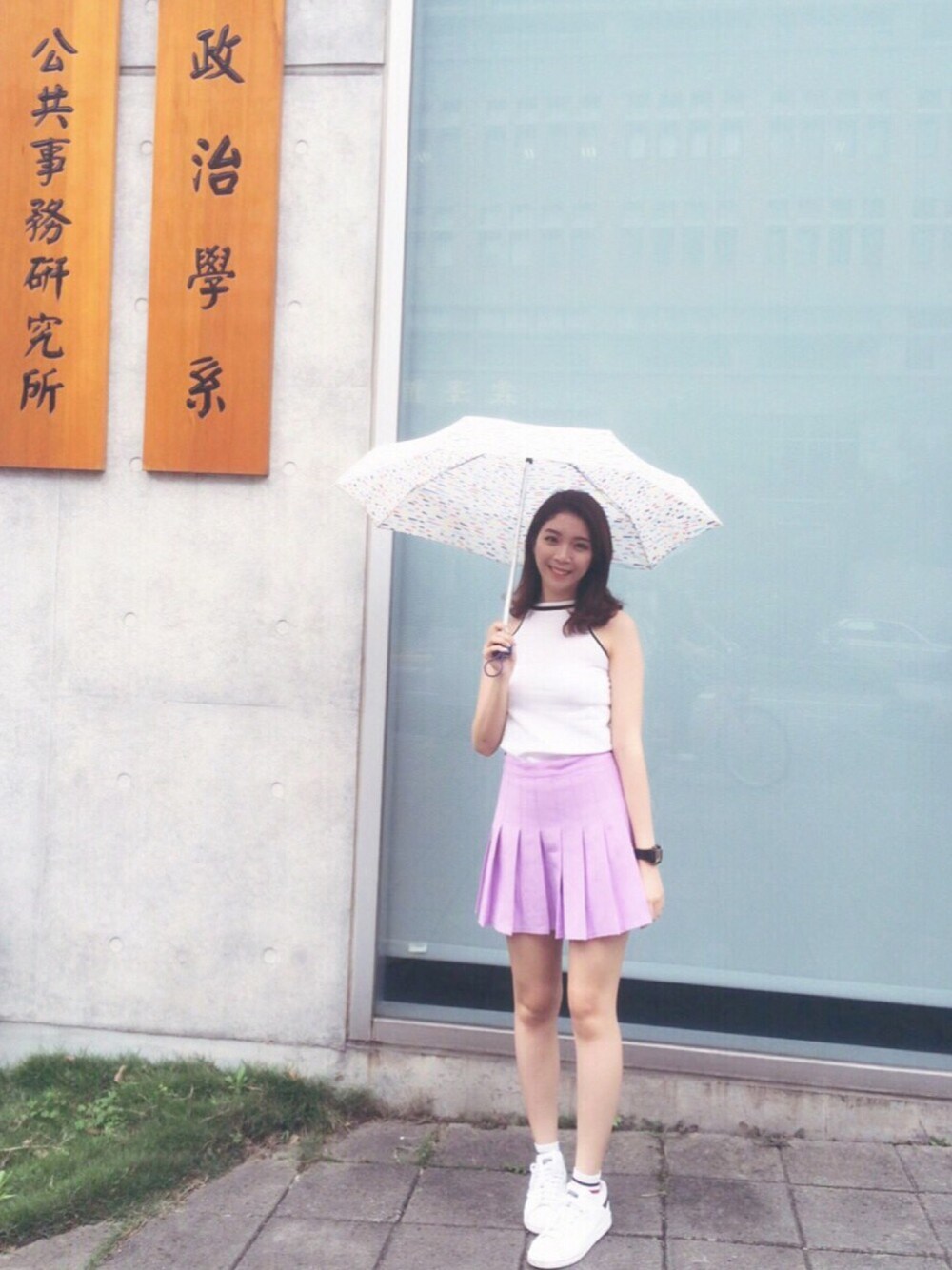 Rainy day walking in National Taiwan University. Wearing clothes from tabao and miustar.